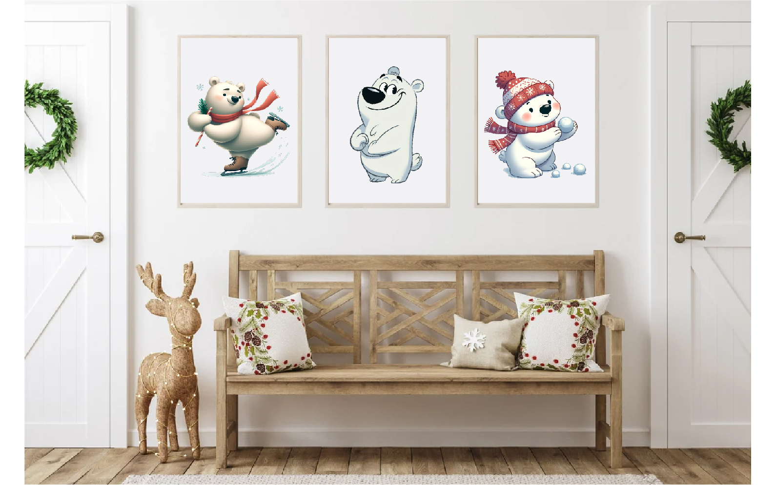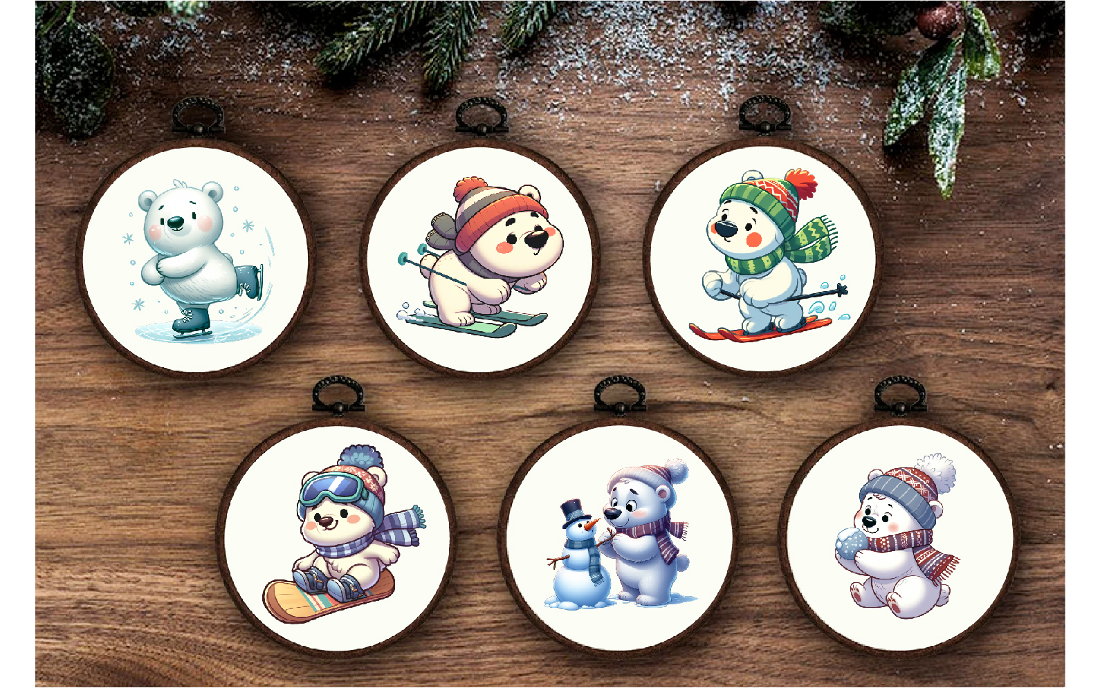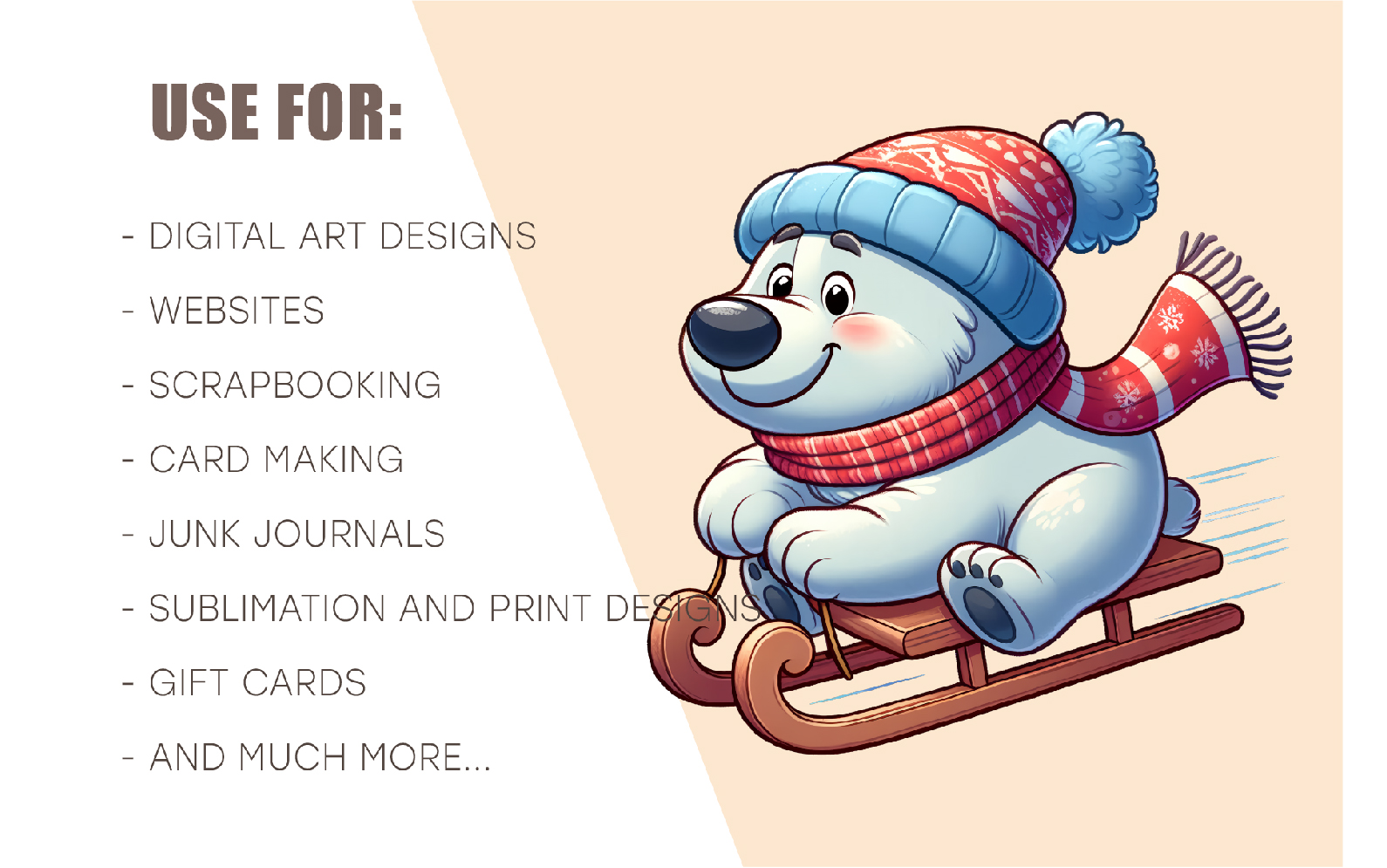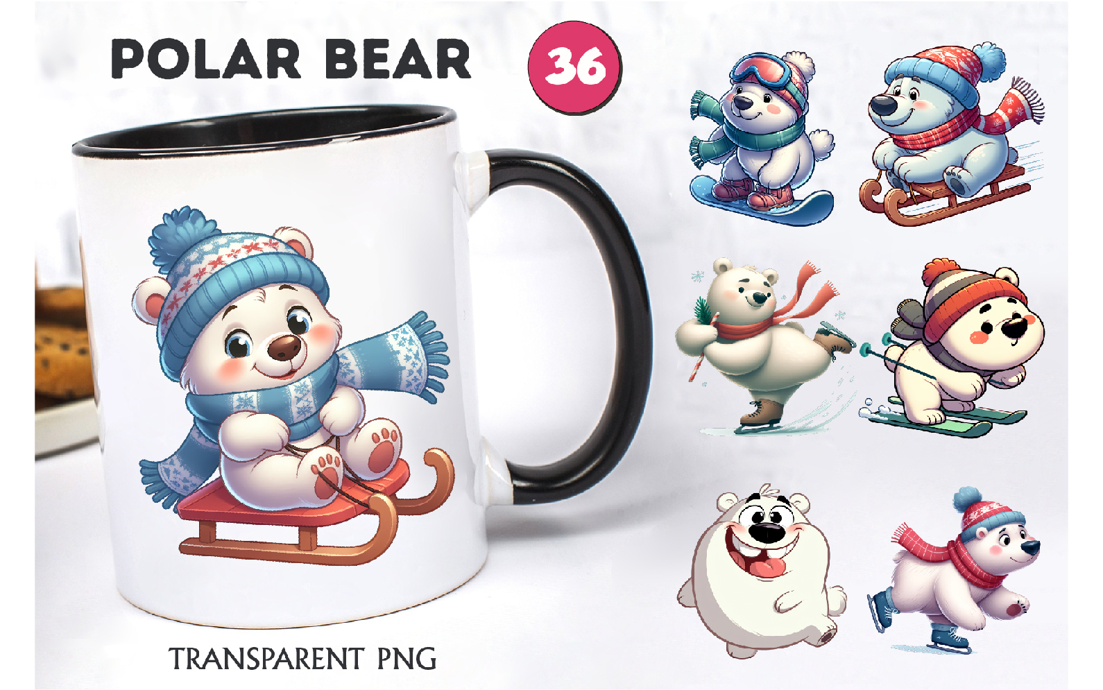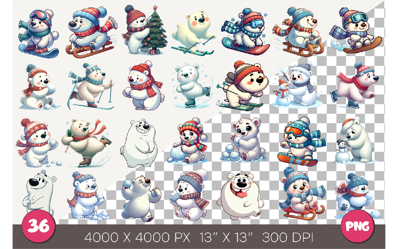 36 Cute Polar bear dressed in a knitted hat and scarf. Clip Art - great choice for creating cards, invitations, party supplies and decorations, logos, planners, wall decor, your blog design, book illustrations or stickers.