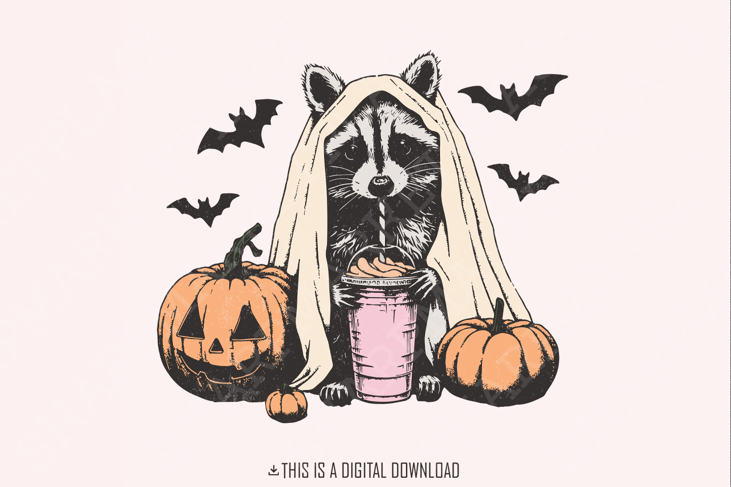 Cute Raccoon Ghost PNG, Halloween png, Spooky Season PNG, Sublimation Designs, Digital Download Illustration