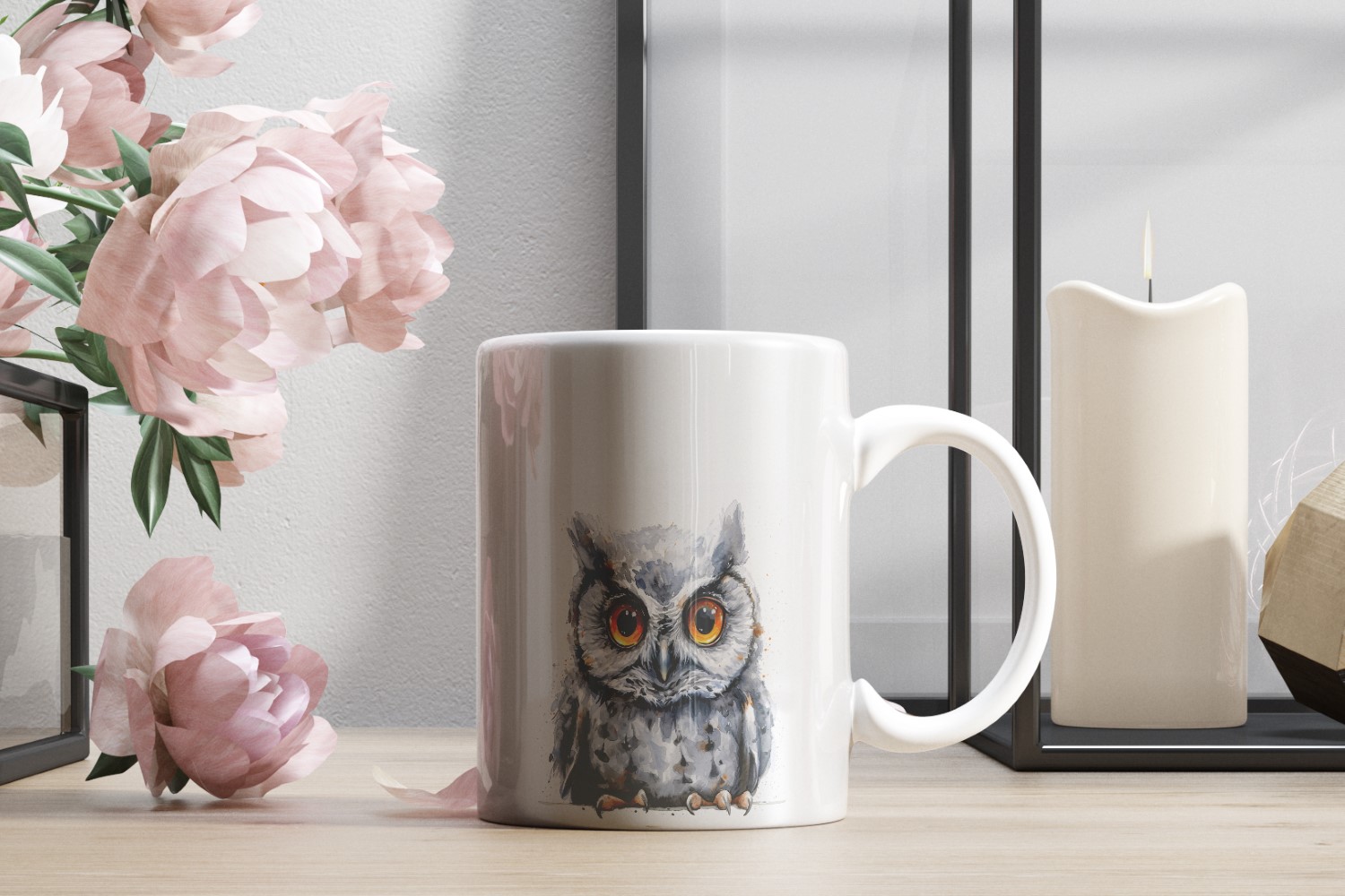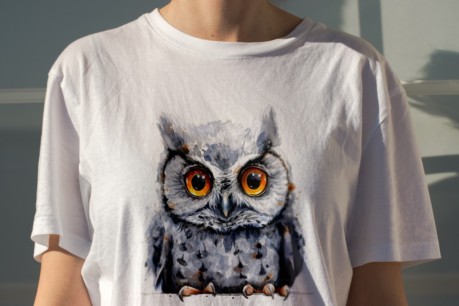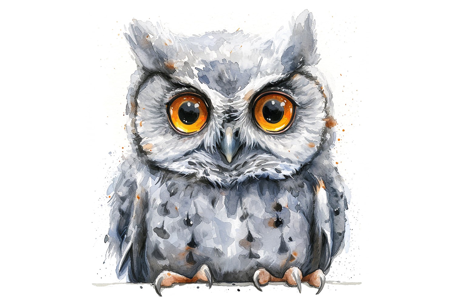Cute Screech Owl Bird Baby Watercolor Handmade illustration 2 Illustration