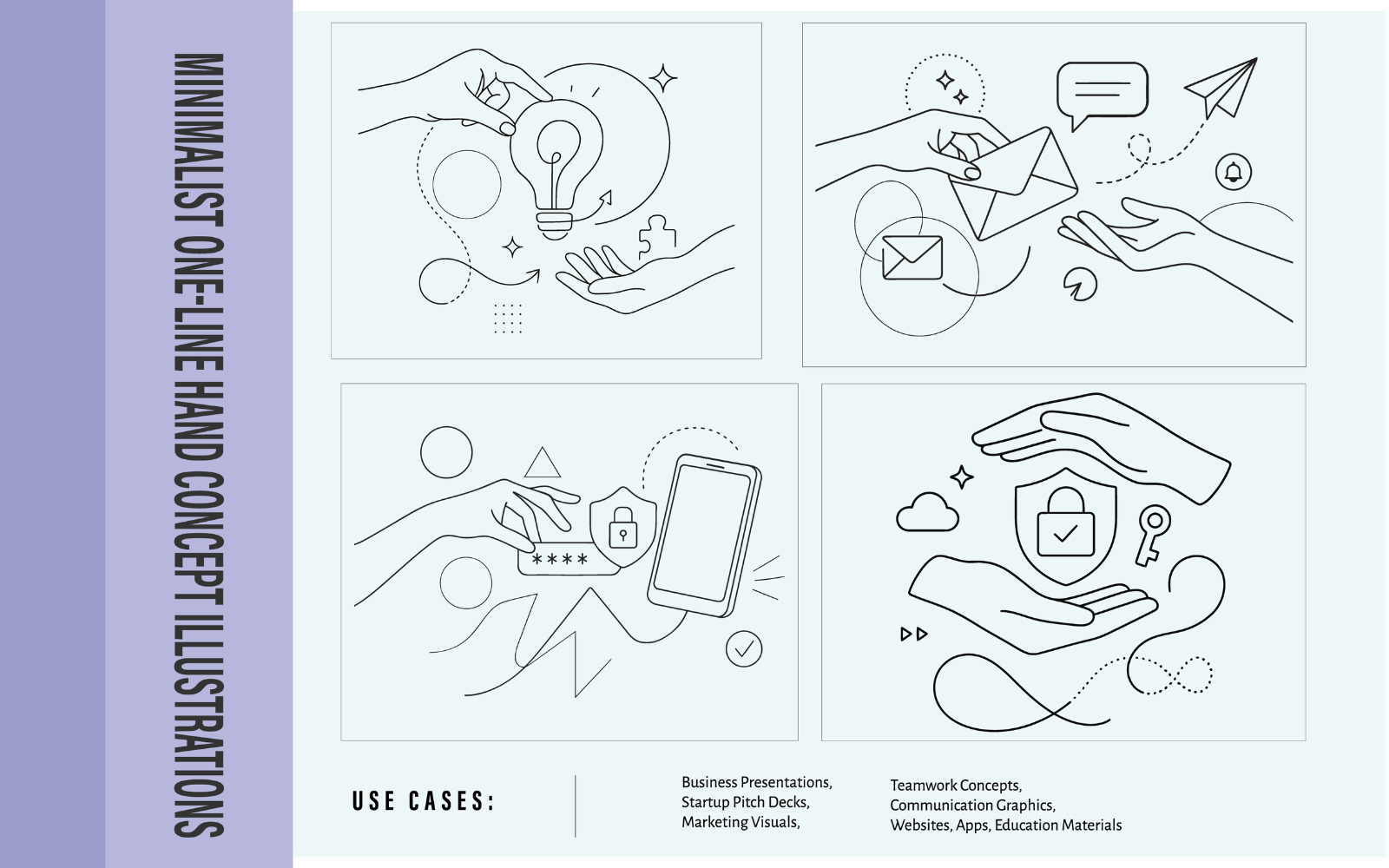 This Minimalist One-Line Illustration Pack focuses on innovation, communication, and cybersecurity concepts. Each drawing is created in a clean continuous-line style, ideal for modern presentations, marketing visuals, and tech branding.