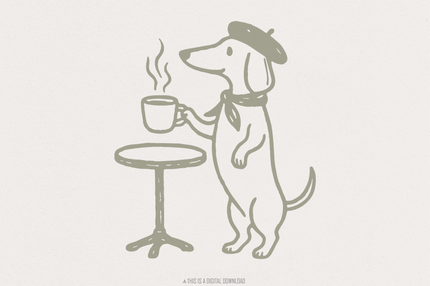 Dachshund Dog PNG Coffee Clipart, French Cafe Art, Minimalist Cute Dog PNG Digital, Dog Lover Gift, Illustration