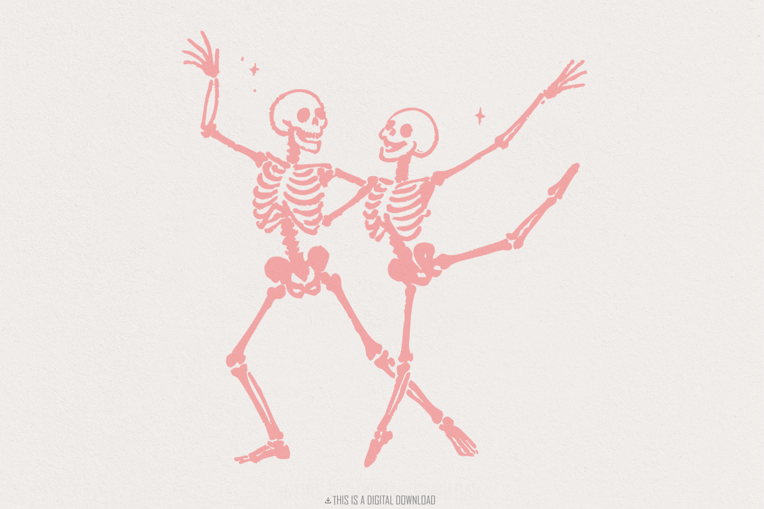 Dancing Skeletons PNG, Halloween PNG, Spooky Season PNG, Funny Pink Skeletons Digital Download, Retro Halloween Design, Skeleton Dance Art