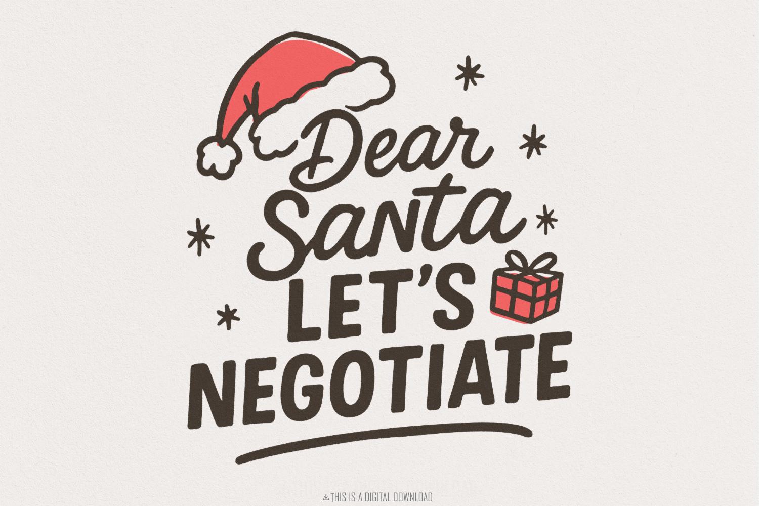 Dear Santa Let's Negotiate PNG, Funny Christmas Shirt, Santa Hat PNG Design For Holiday Party, Instant Download Santa PNG For Kids