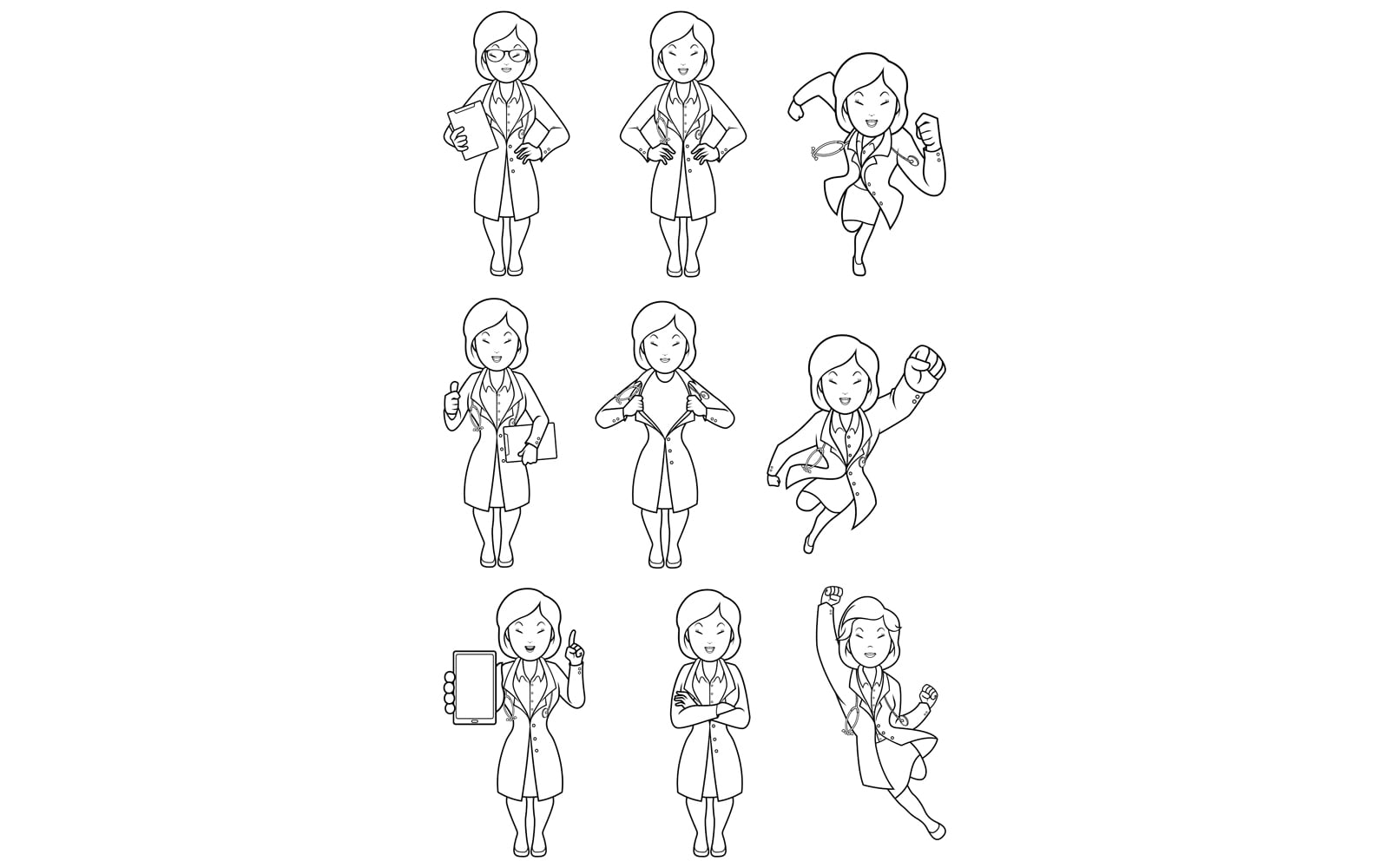 Doctor Asian Female Line Art - Illustration