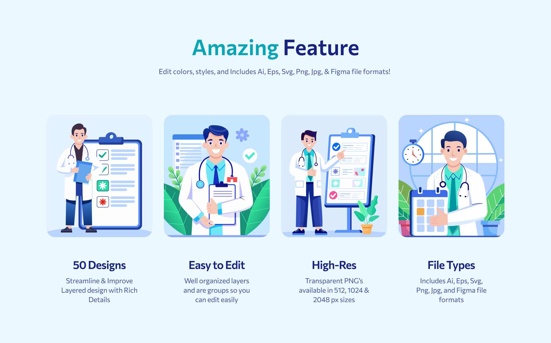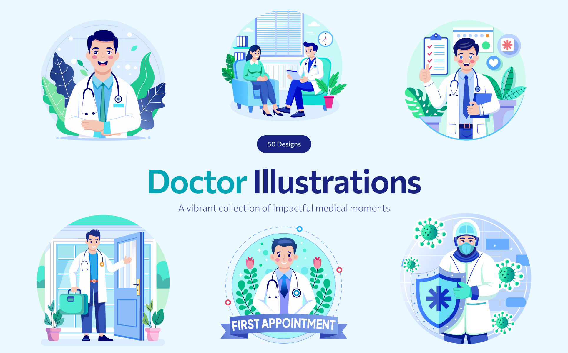 Bring professionalism and trust into your creative projects with this Doctor Illustration Art Set. Designed in a clean and modern style, these illustrations are perfect for medical websites, healthcare apps, presentations, and branding materials. Whether you’re showcasing doctor activities, medical equipment, or healthcare support, this versatile set helps you communicate reliability and care through visuals that truly connect.