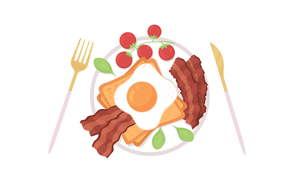 English breakfast semi flat color vector object. Morning eating routine. Realistic item on white. Lifestyle isolated modern cartoon style illustration for graphic design and animation .