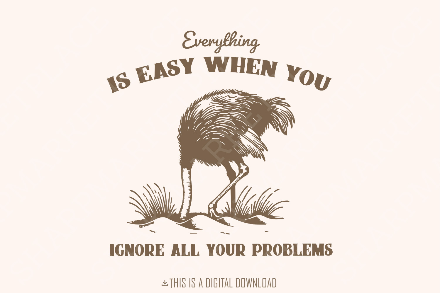 Everything Is Easy When You Ignore All Your Problems PNG SVG, Funny Vintage, Retro Animal Sayings Illustration