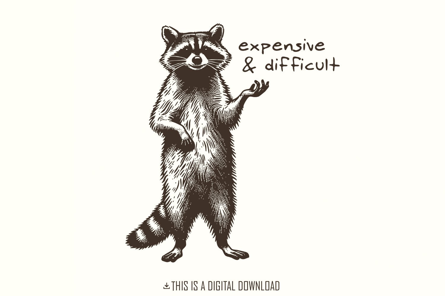 Expensive Difficult Sarcastic PNG, Funny Racoon png, Trash Panda Design, Sarcastic Funny Saying, Illustration