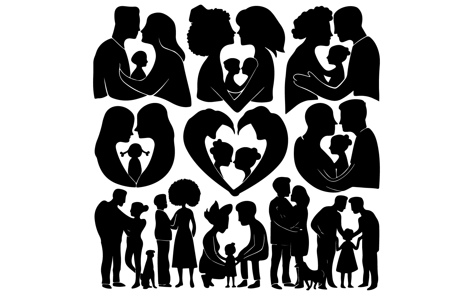 Families silhouette vector art illustration with white background Template Design