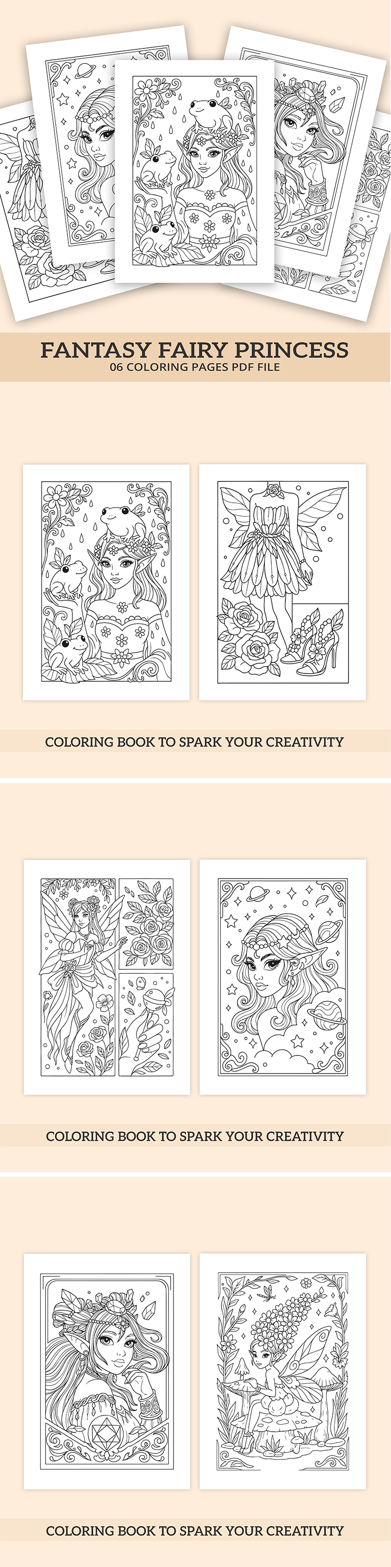 Fantasy Fairy Princess Coloring Pages for Adults & Kids Illustration