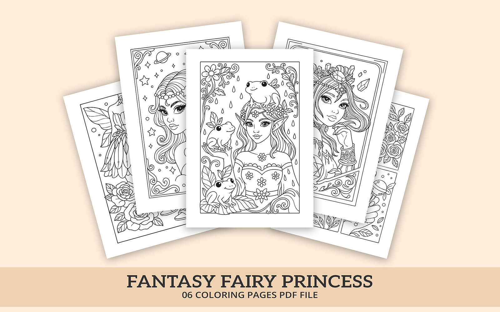 🧚♀️ FANTASY FAIRY PRINCESS COLORING PAGES – 6 MAGICAL PRINTABLE DESIGNS (PDF) 🧚♀️