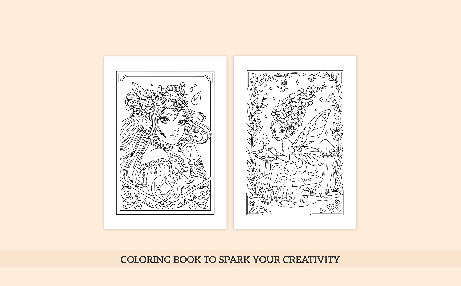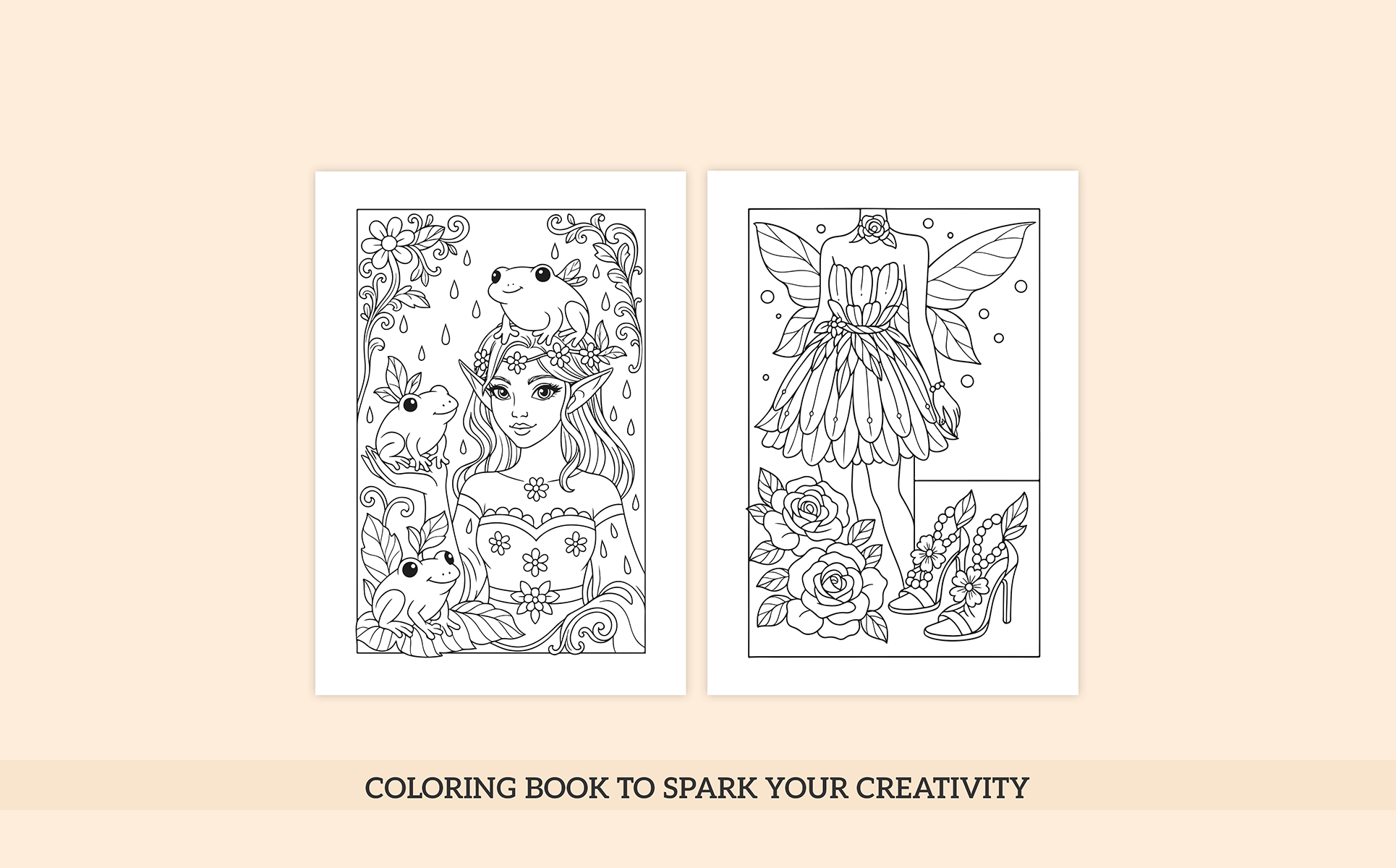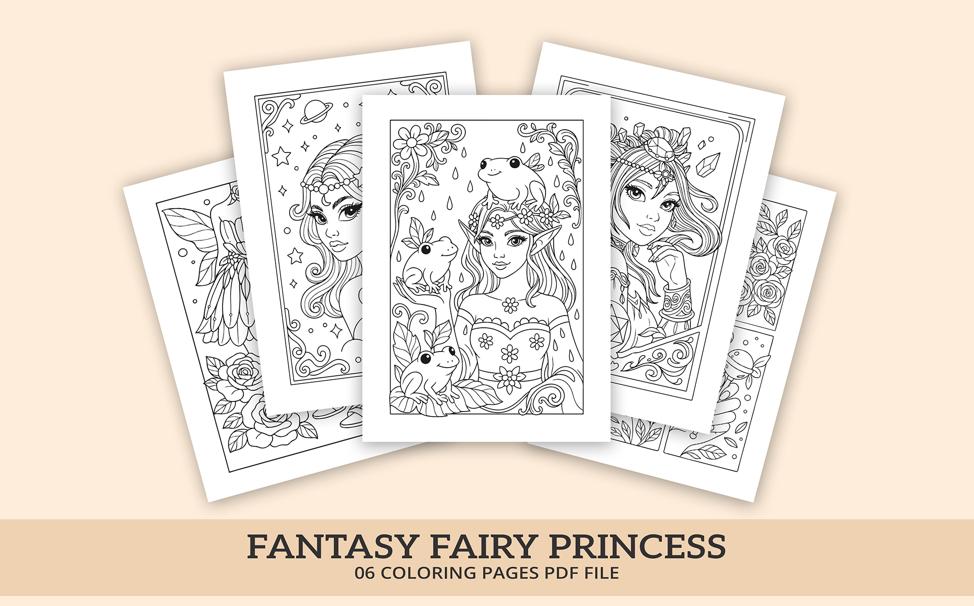 Fantasy Fairy Princess Coloring Pages for Adults & Kids Illustration