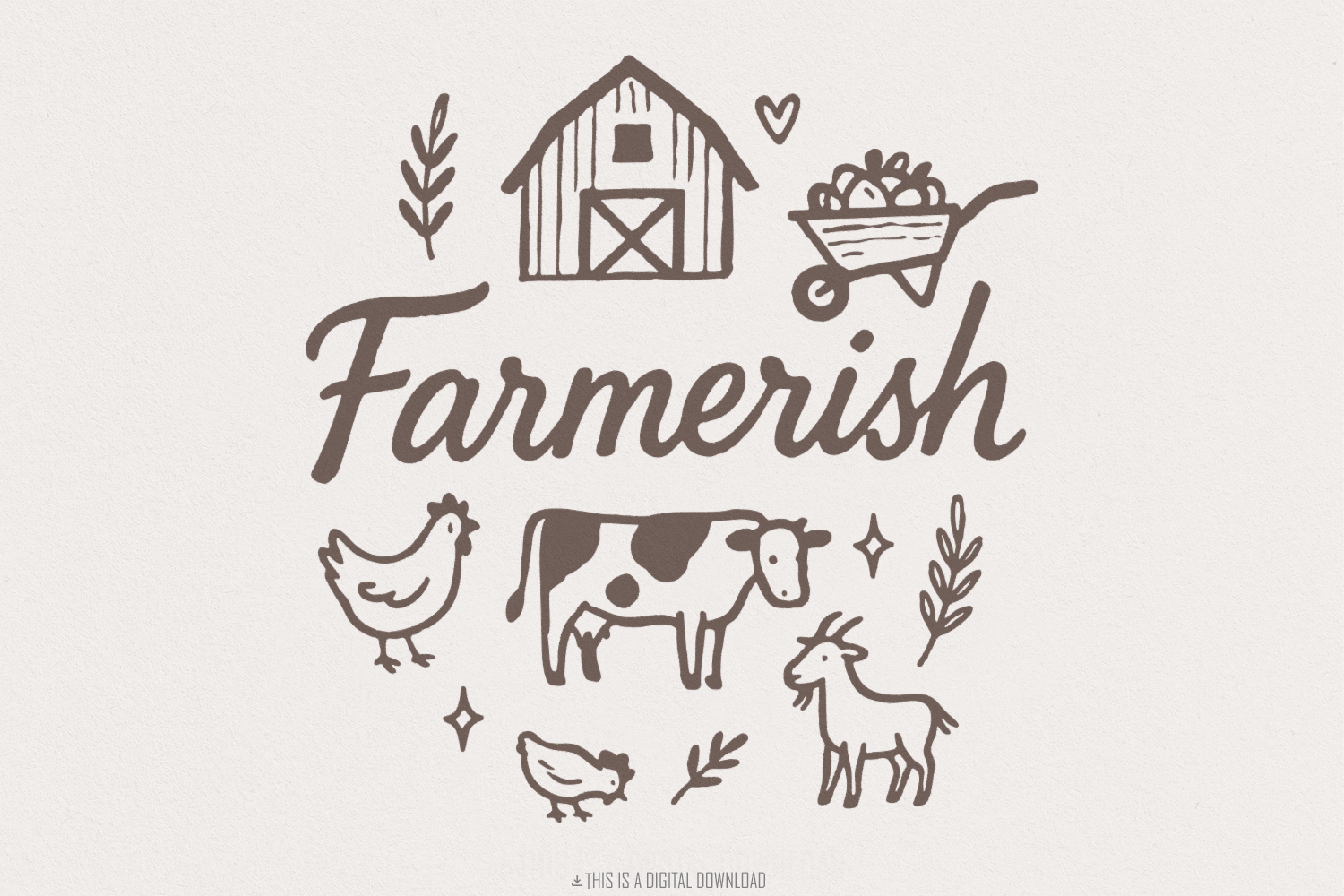 Farmerish PNG, Farm Animal Digital Download, Barnyard Shirt Design, Rustic Country Cow, Goat & Illustration
