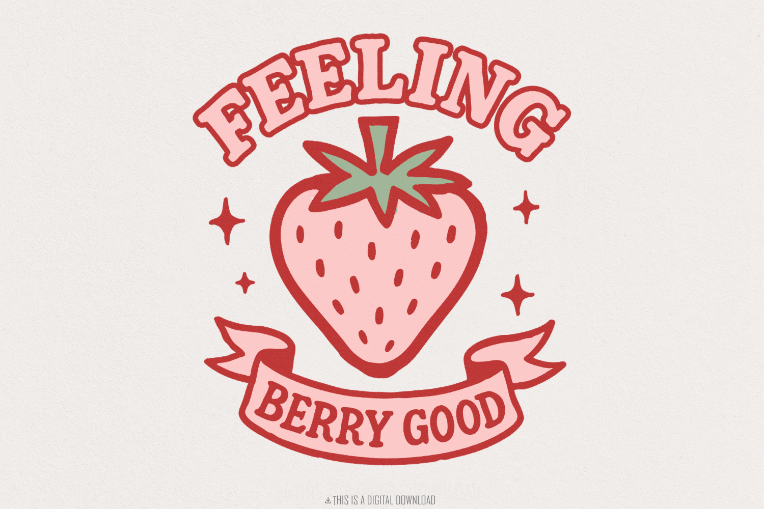 Feeling Berry Good PNG, Retro Strawberry Digital Download, Cute Summer Shirt Design, Fruit Illustration, Berry Good Art, Printable PNG
