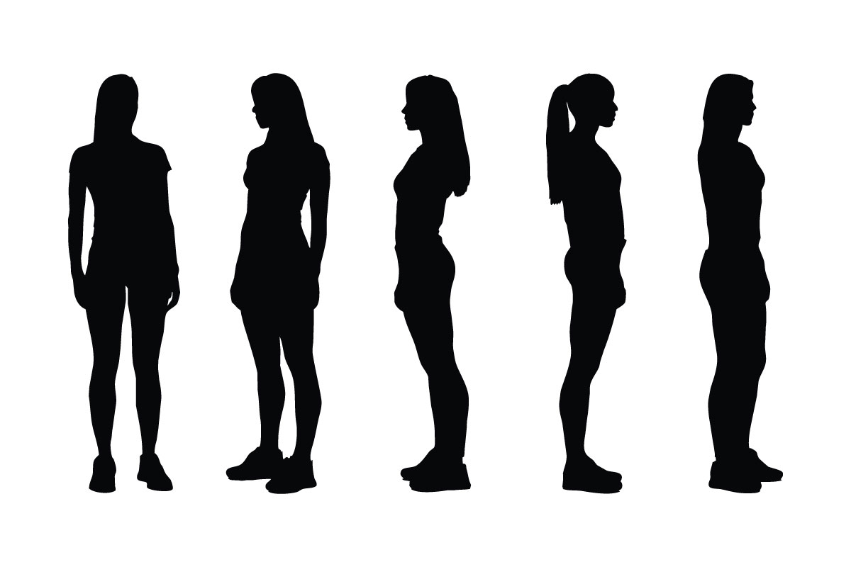 Female model and actor silhouette set. Female model silhouette on a white background. Girl actors posing in different positions. Female model silhouette bundle. Women fashion actors with anonymous faces. Actress silhouette collection.