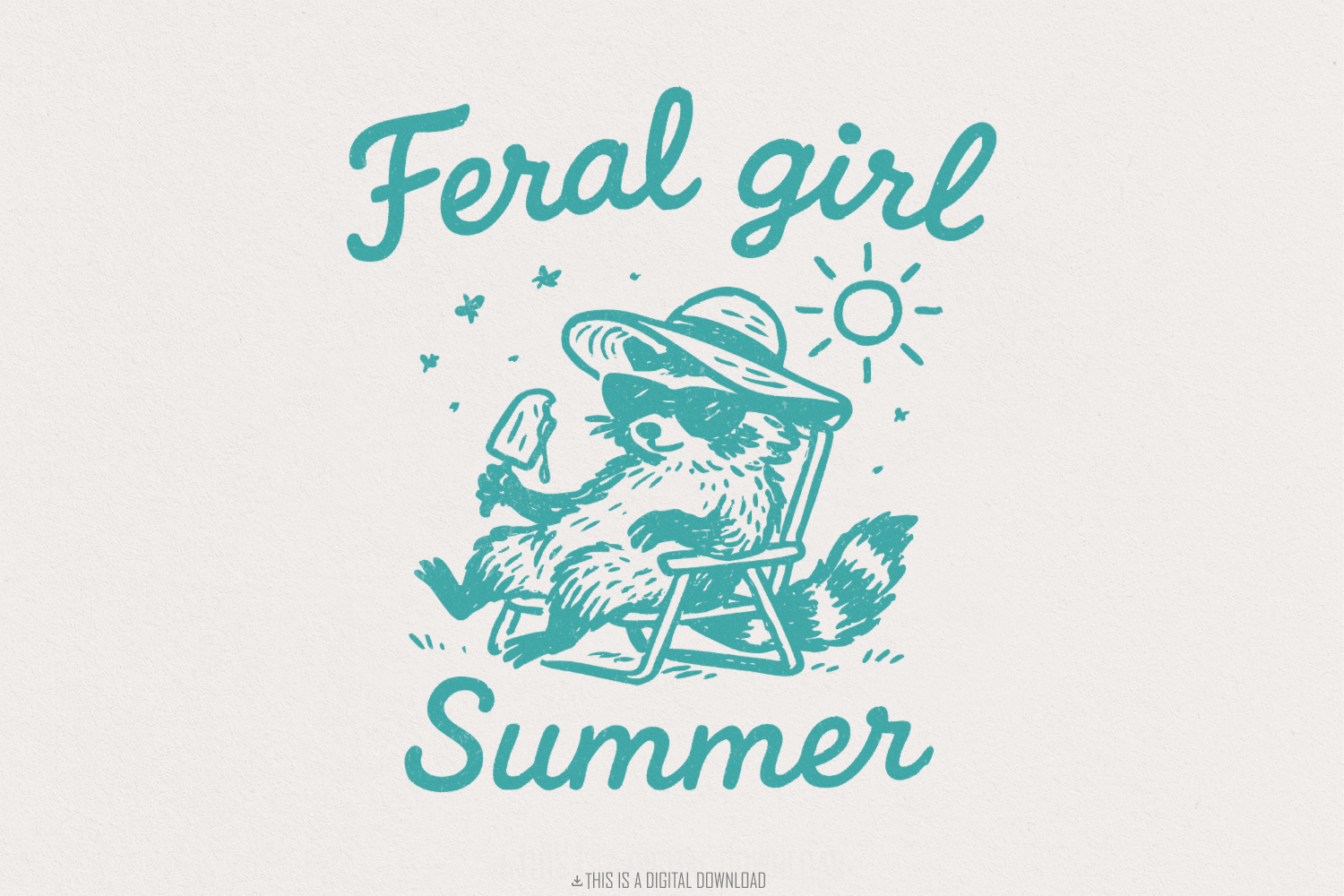 Feral Girl Summer Raccoon Png, Funny Raccoon, Cowgirl Png, Western Digital Download, Summer Graphic Png, Sublimation, Retro Animal Humor
