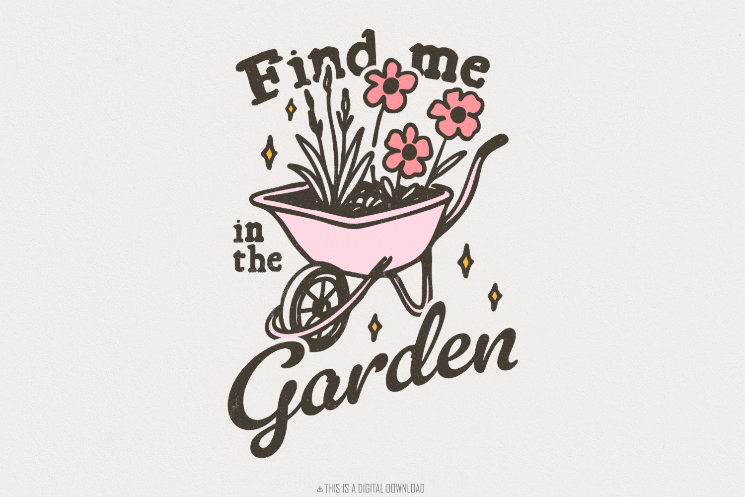 Find me in the garden png, Gardening png, Funny gardening png, Plant lover png, The gardener png, Illustration