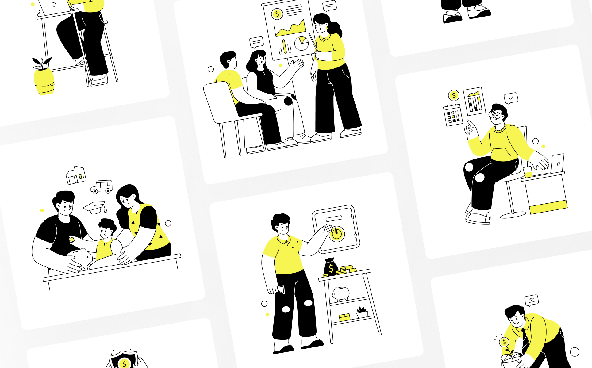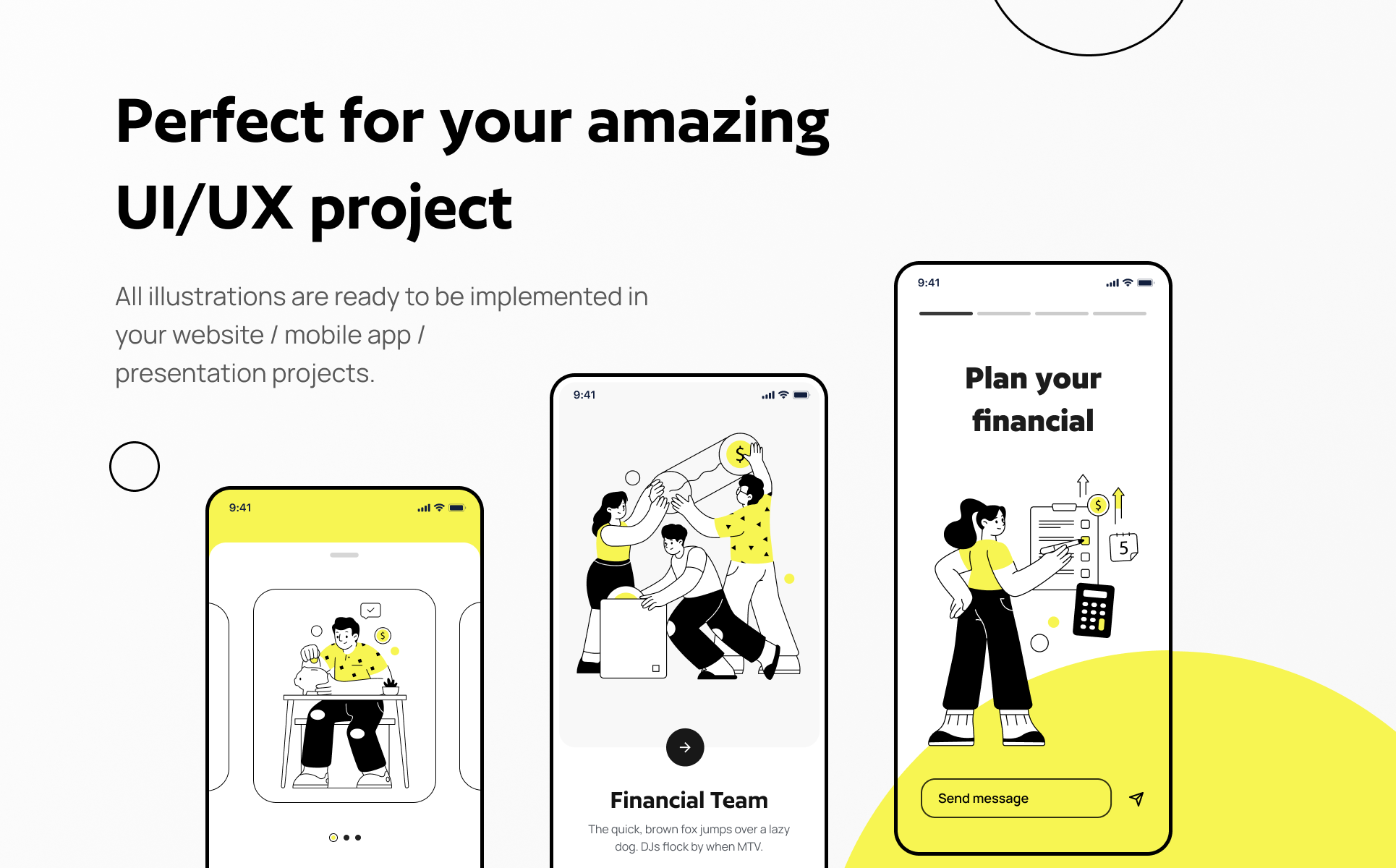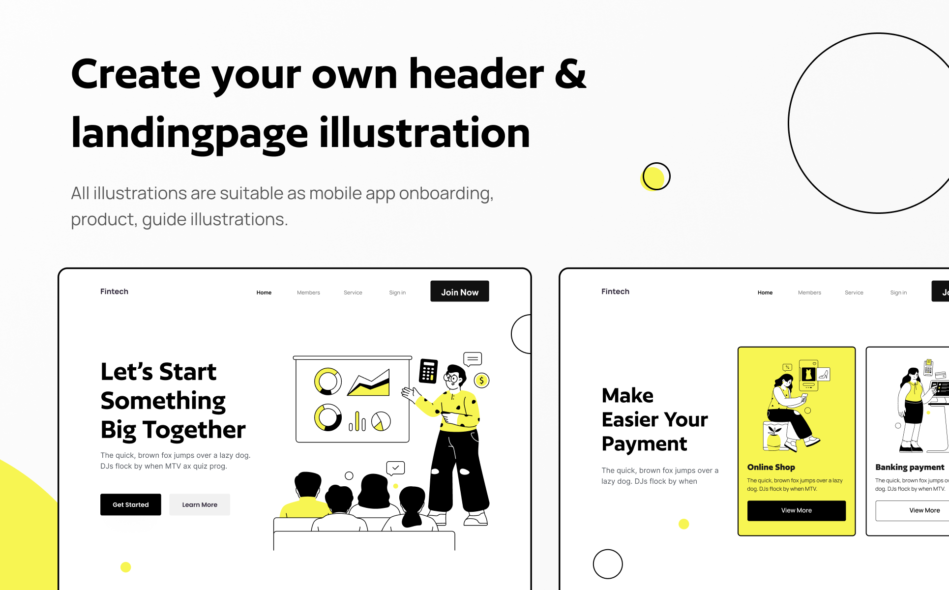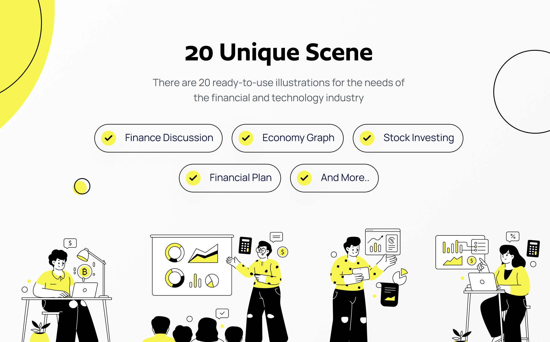Fintechy is a pack of custom illustrations suitable for any Fintech niche. Made fully-layered and separated vector objects.