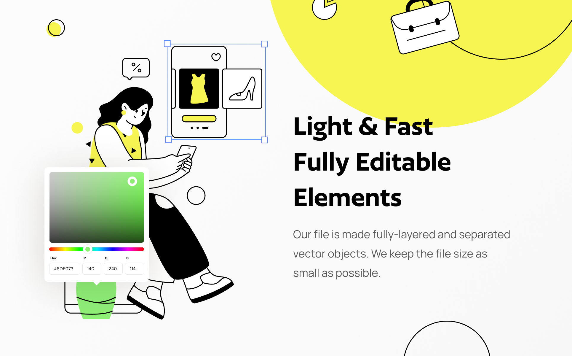 100% vector editable and scalable. The color is easy to change. Each illustration is organized, named & very easy to use.
