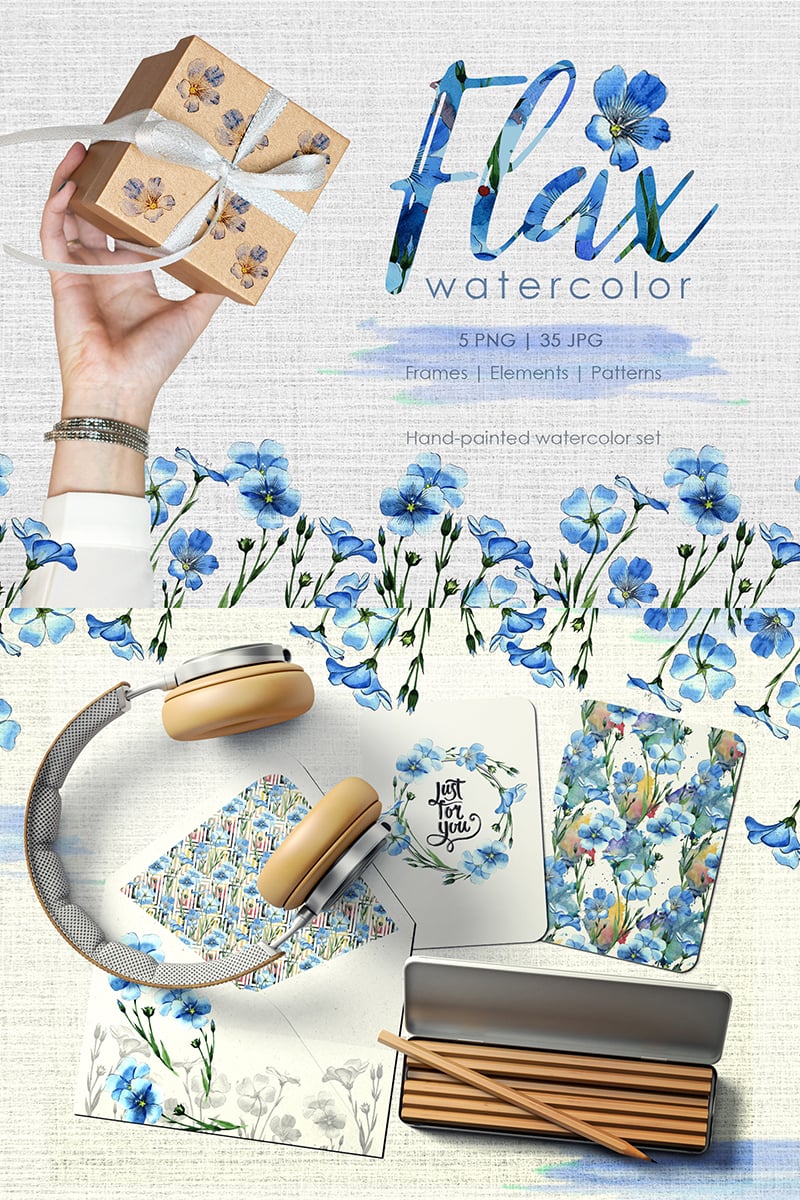Flax blue Watercolor png clipart of 40 files. Ideal material for DIY, wedding invitations, greeting cards, quotes, blogs, posters and more.