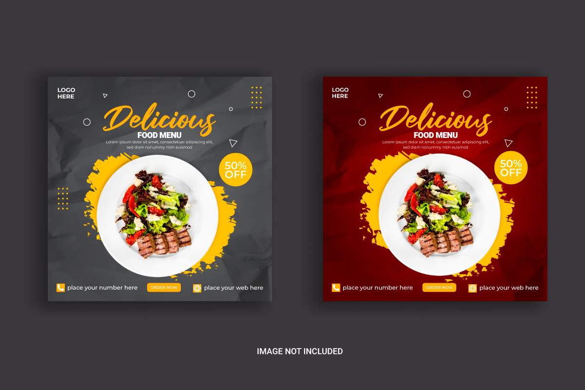 Food social media feed post template social media instagram for food promotion simple banner frame. Panels buttons and donation bar vector set. Vector 3 steps. Ready to use for Multipurpose uses, All main elements are editable and customizable.