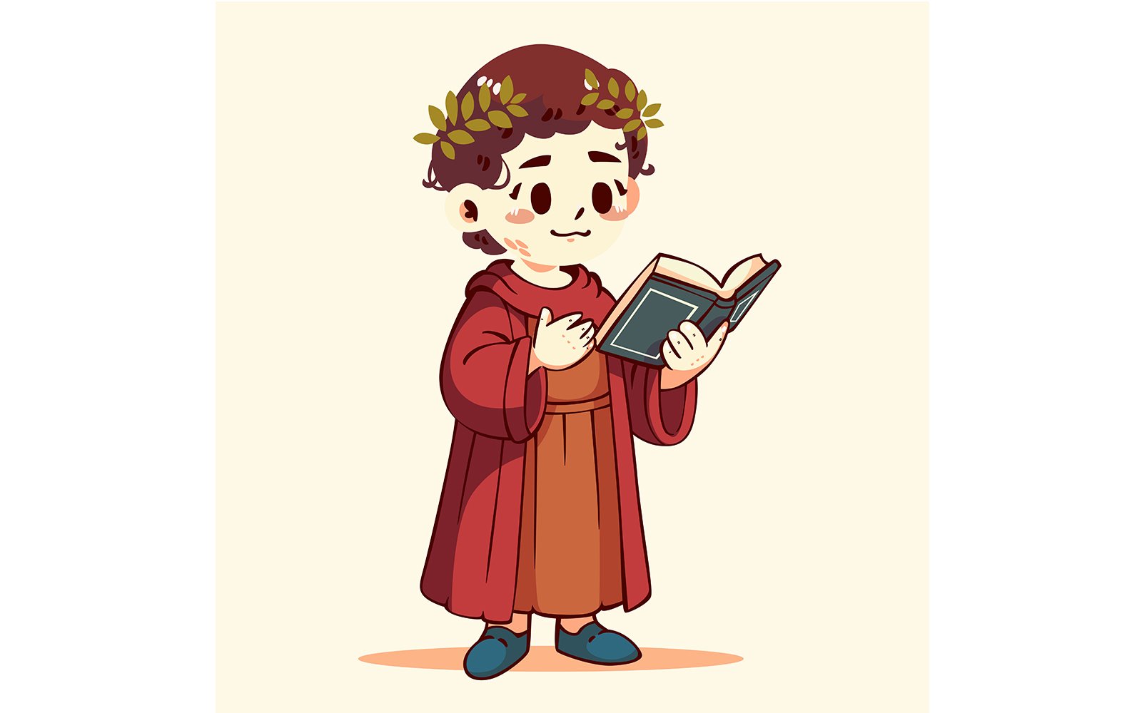 **Explore our fun cartoon illustration of a boy engrossed in reading, perfect for philosophy day, educational themes, and creative inspiration**