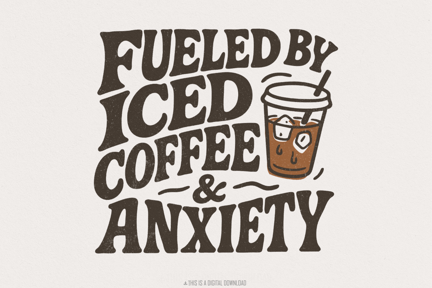 Fueled by Iced Coffee and Anxiety png, Coffee Lover png, Trendy Coffee PNG, Iced Coffee Clipart, Illustration