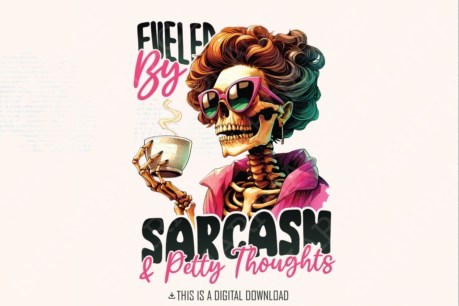 Fueled by Sarcasm & Petty Thoughts PNG, Funny Tshirt Designs, Sassy Png, Adult Png, Colorful Png, Sublimation Skeleton, Humor Png Womens