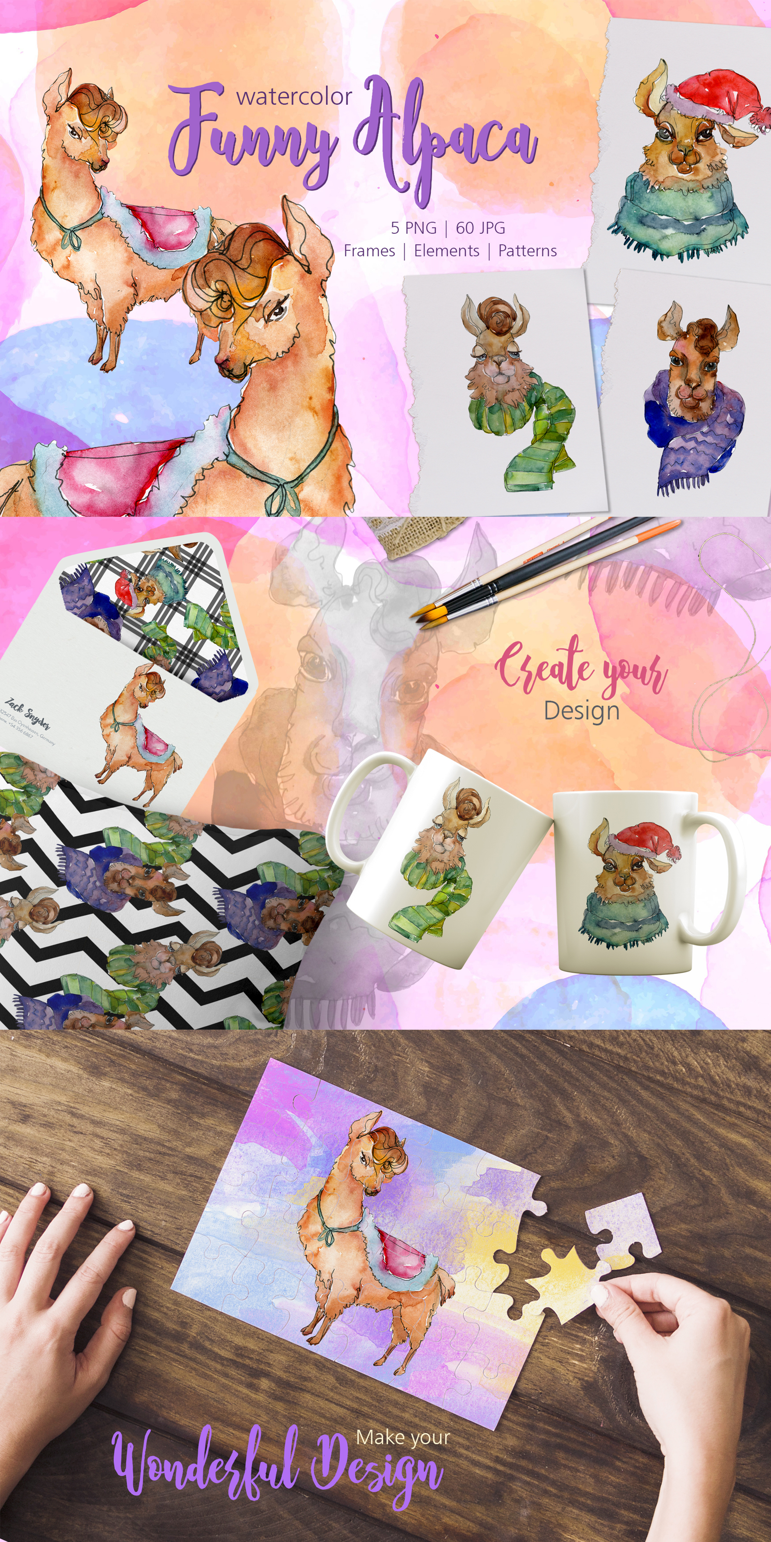 Funny Alpaca Watercolor png clipart of 65 files. Ideal material for DIY, wedding invitations, greeting cards, quotes, blogs, posters and more.