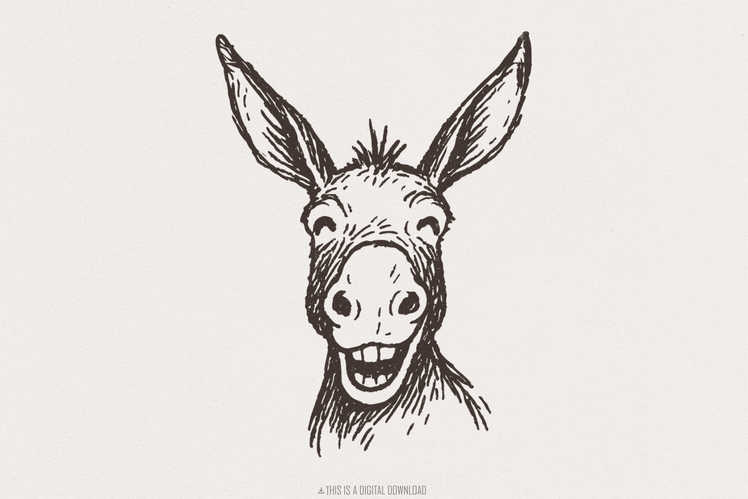 Funny Donkey PNG, Smiling Animal Clipart, Hand Drawn Farm Animal PNG, Digital Download Shirt Illustration