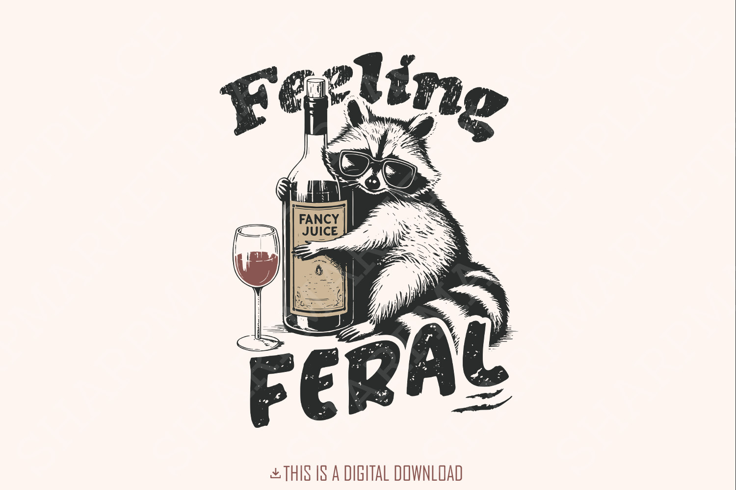 Funny Raccoon Shirt PNG, Feeling Feral Digital Download, Sarcastic Trash Panda Design, Feral Illustration