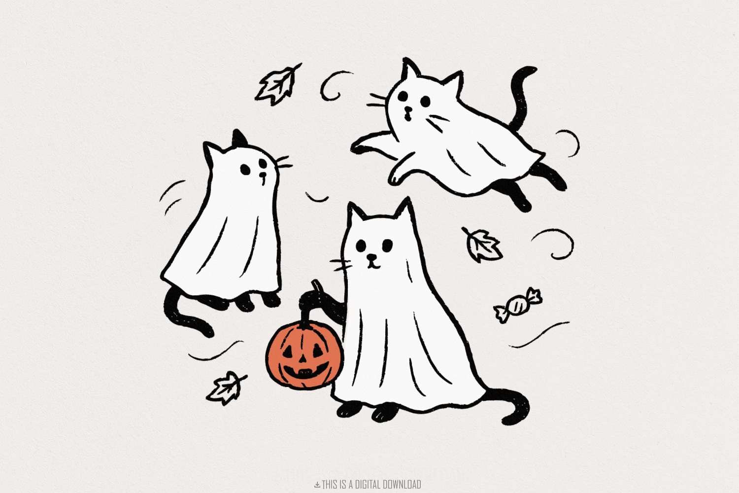 Ghost Cat PNG, Spooky Halloween Cat, Cute Black Cat PNG, Trick or Treat Cats Art, Pumpkin Bucket, Autumn Candy, High-Res Printable PNG File