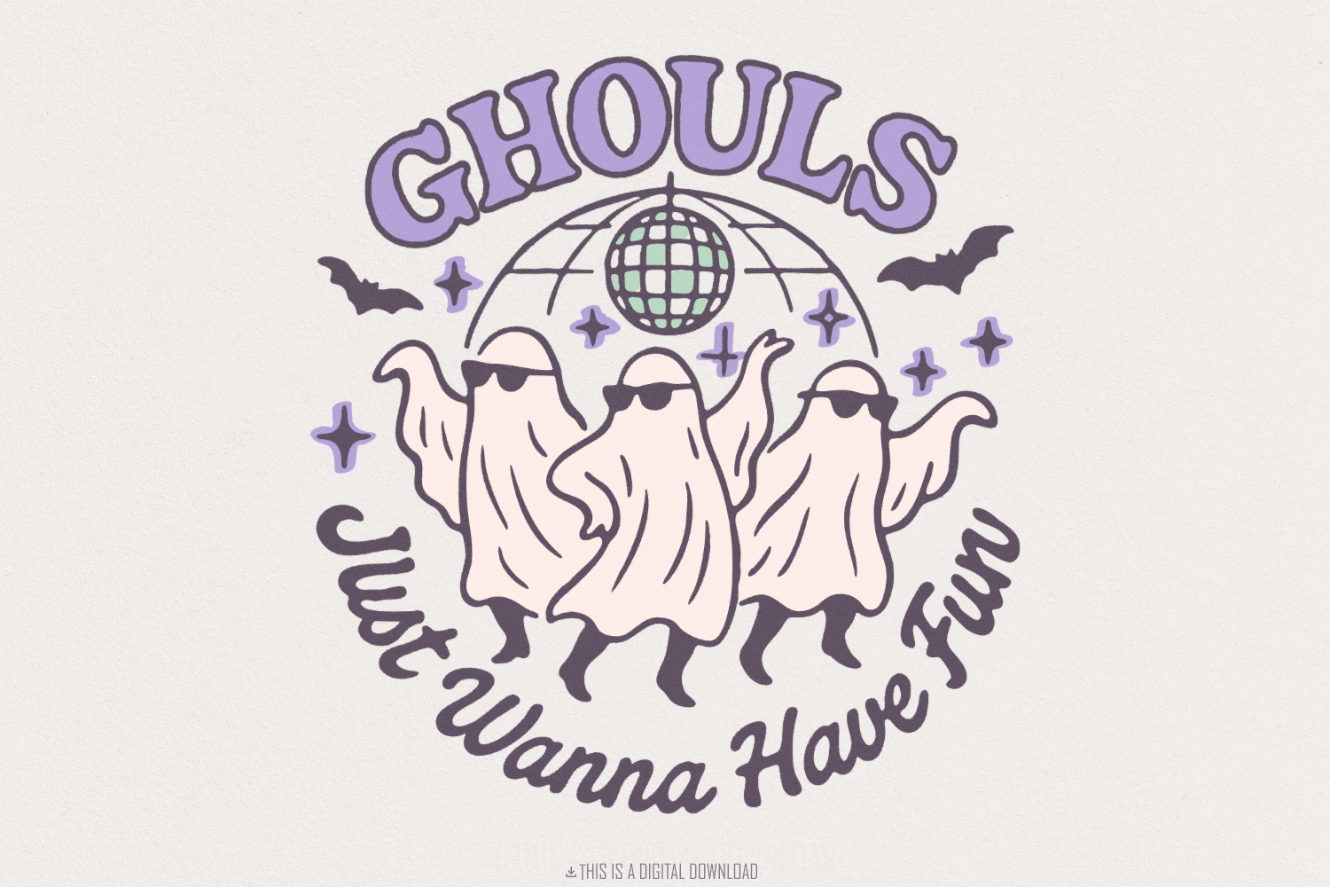 Ghouls Just Wanna Have Fun PNG, Halloween PNG, Cute Ghosts Retro Pastel, Spooky Disco Ball, Dancing Ghost PNG, Trendy Halloween Digital