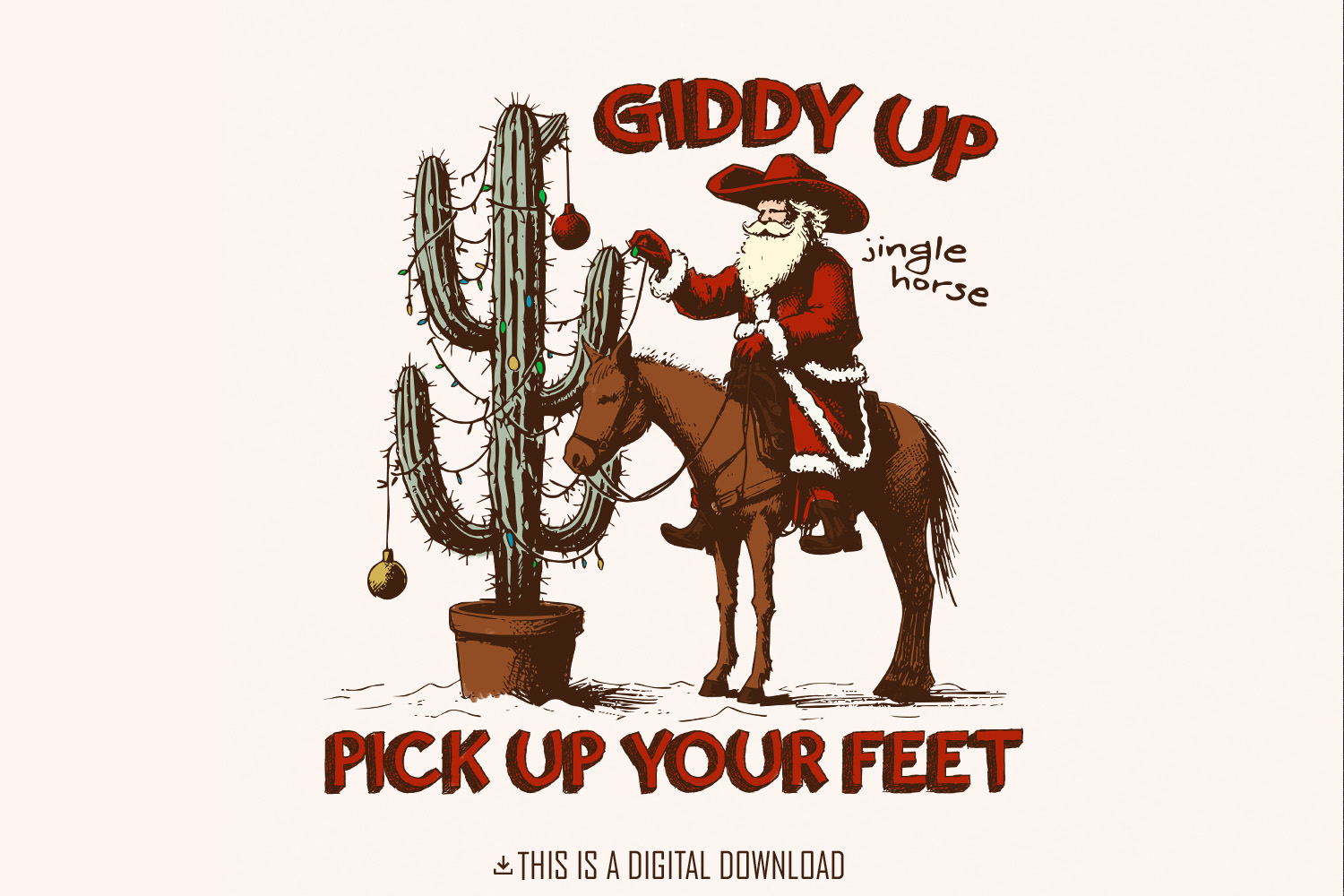Giddy Up Jingle Horse PNG Digital Download, Western Christmas Design, Cowboy Christmas Sublimation, Retro Santa Claus, Cowgirl Christmas