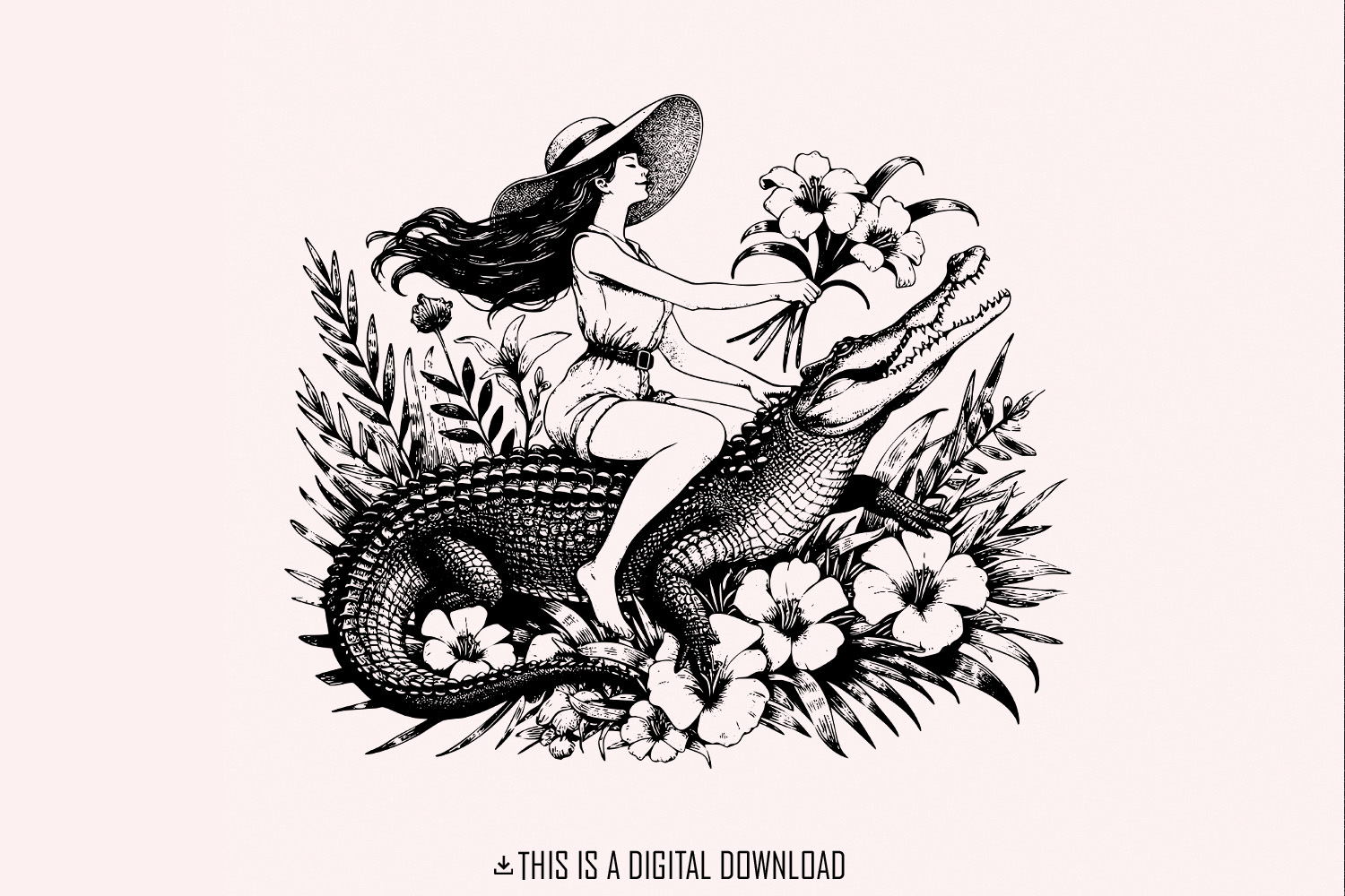 Girl Riding an Alligator PNG, Funny Sarcastic PNG, Digital Download, Alligator png, Sublimation, Illustration