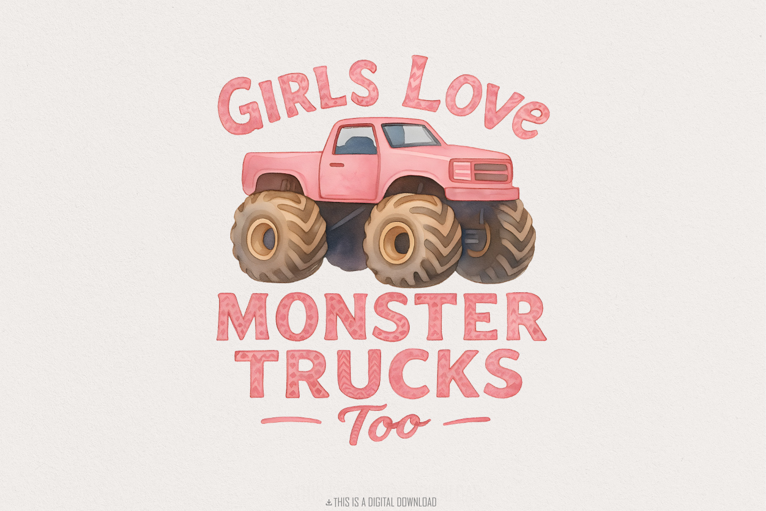 Girls Love Monster Trucks Too PNG, Girls Pink Truck, Monster Truck Digital Gift, Toddler Birthday Illustration
