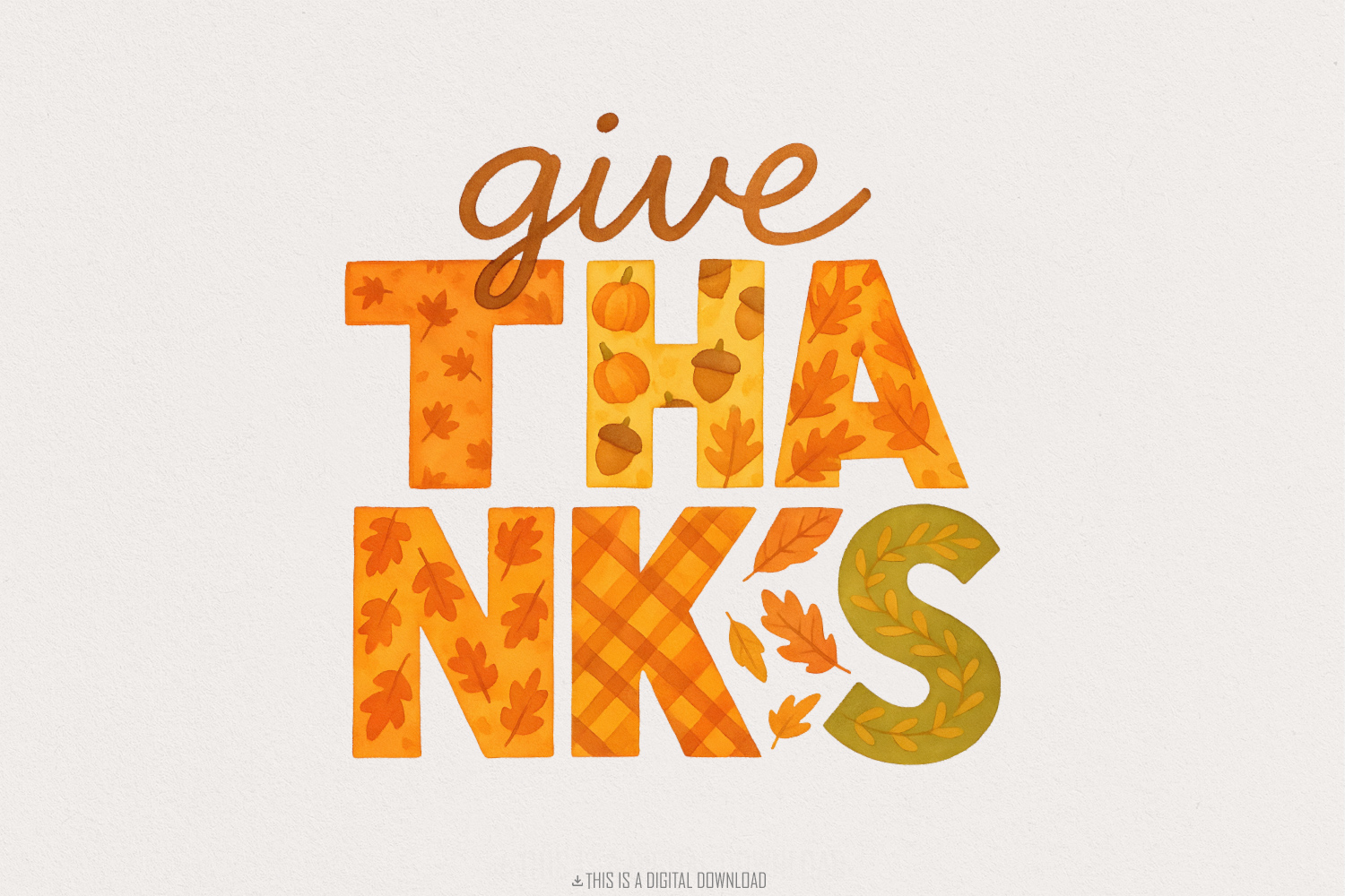 Give Thanks PNG, Fall Thanksgiving Shirt, Autumn Leaves PNG, Pumpkin Graphic, Grateful Quote, Plaid Harvest Png, Thankful Digital Download