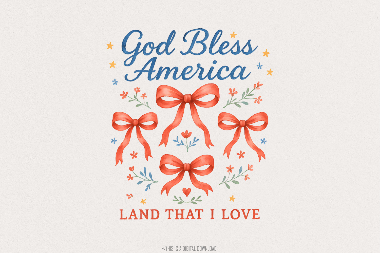 God Bless America PNG, Coquette 4th of July PNG, Patriotic PNG, Sublimation Art, America Digital Download, Retro USA, American Girly PNG