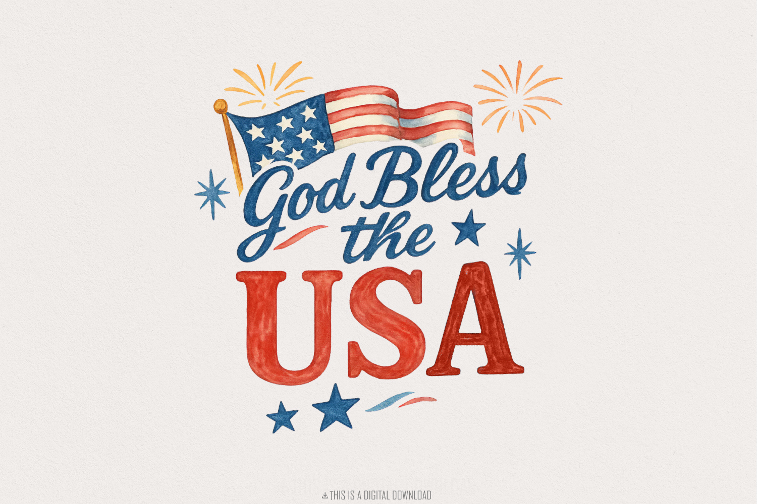God Bless the USA PNG, 4th of July PNG, Independence Day, Patriotic Celebration, Red White Blue, Illustration