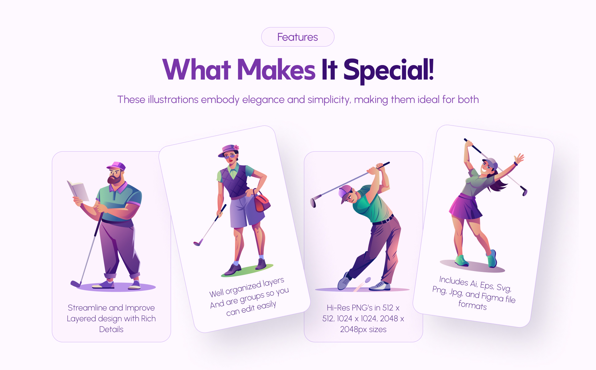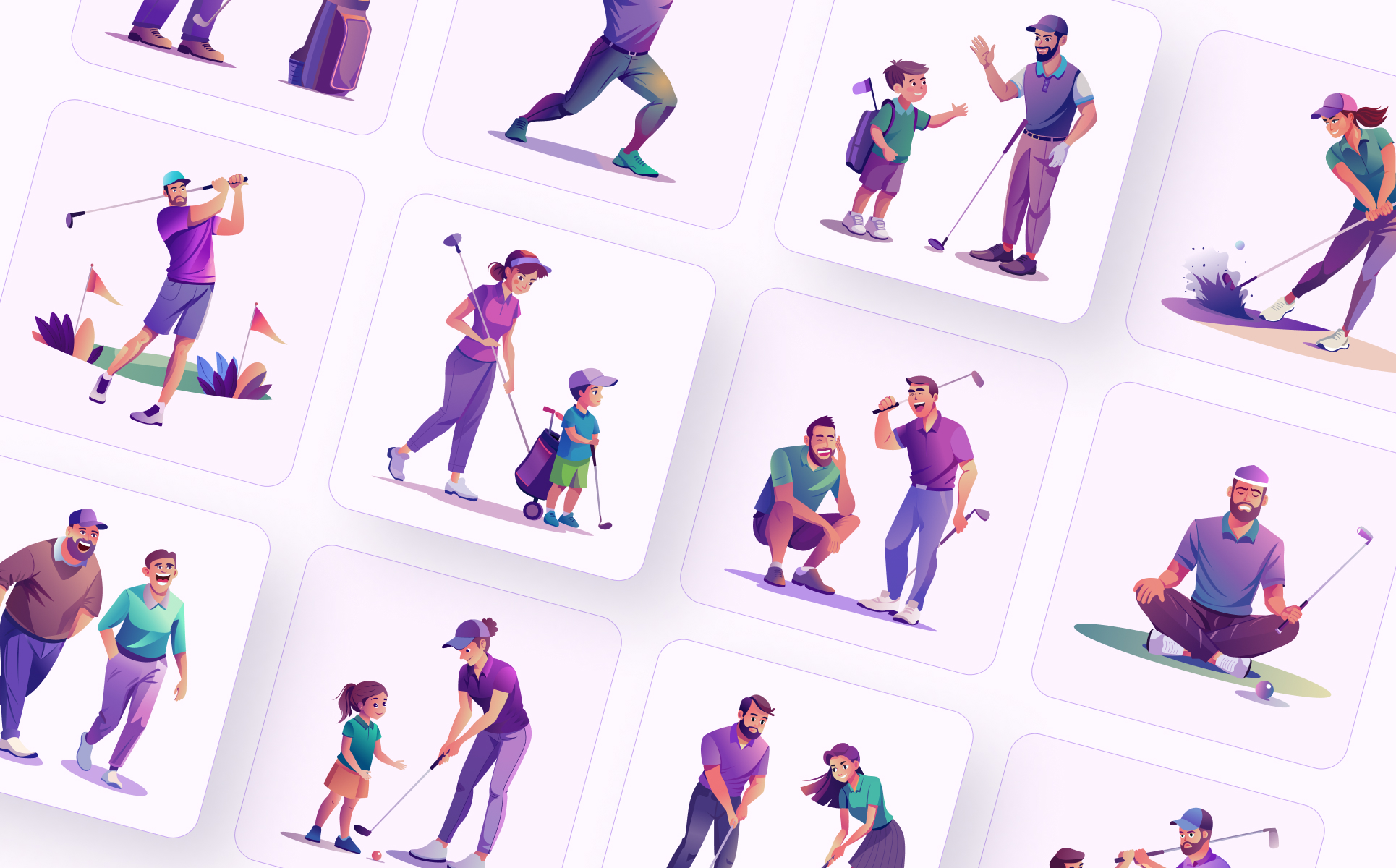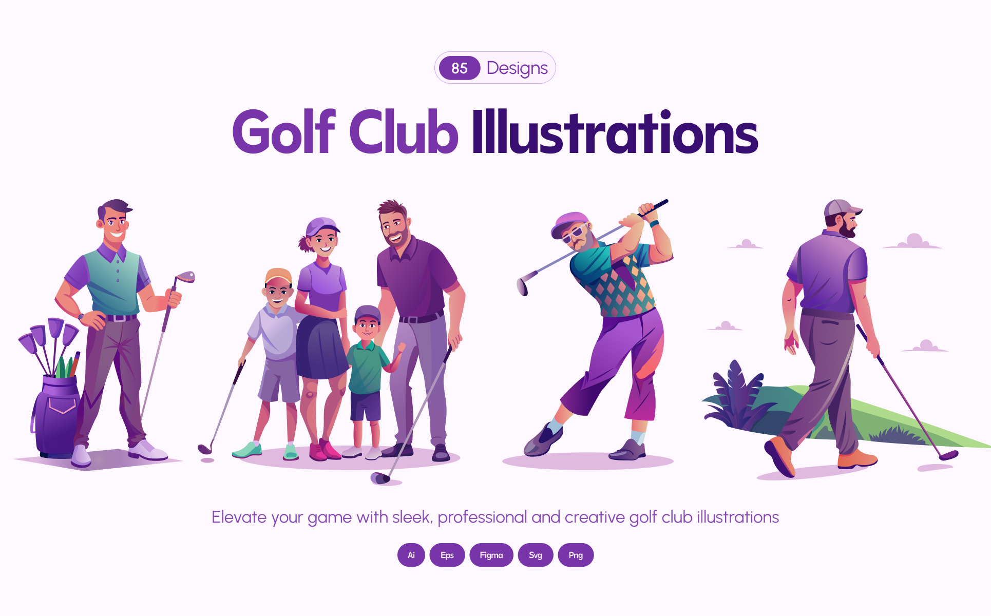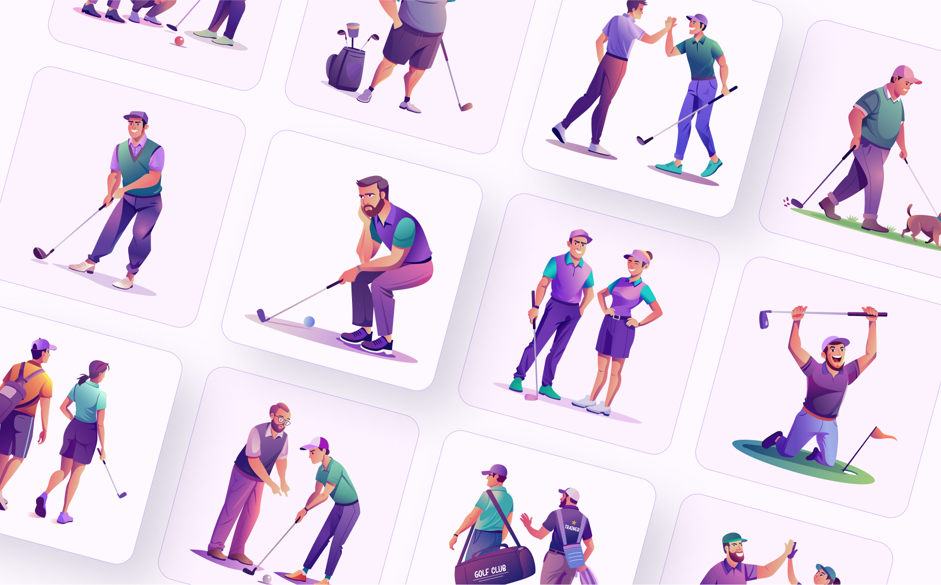 Step up your creative projects with our Golf Club Vector Illustration Set! Featuring golfer training and club activities, this delightful collection captures the spirit of the game with a touch of creativity. Whether you’re designing for web, print, or digital media, these vectors will make your project a hole-in-one!
