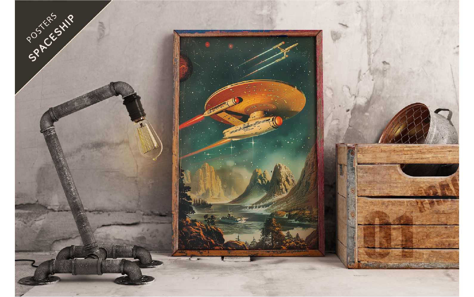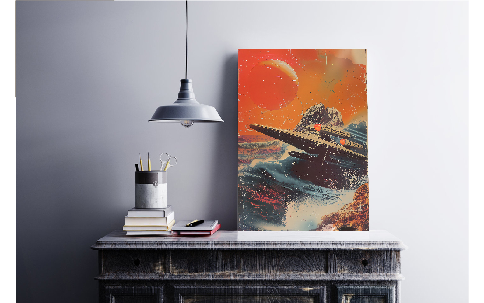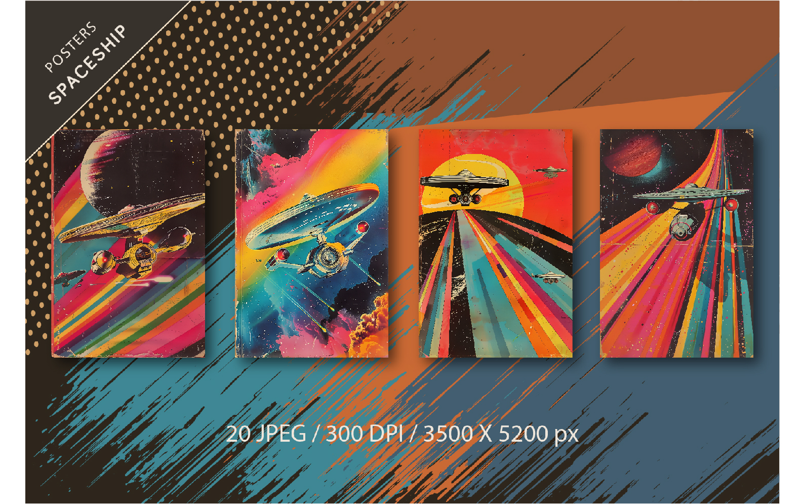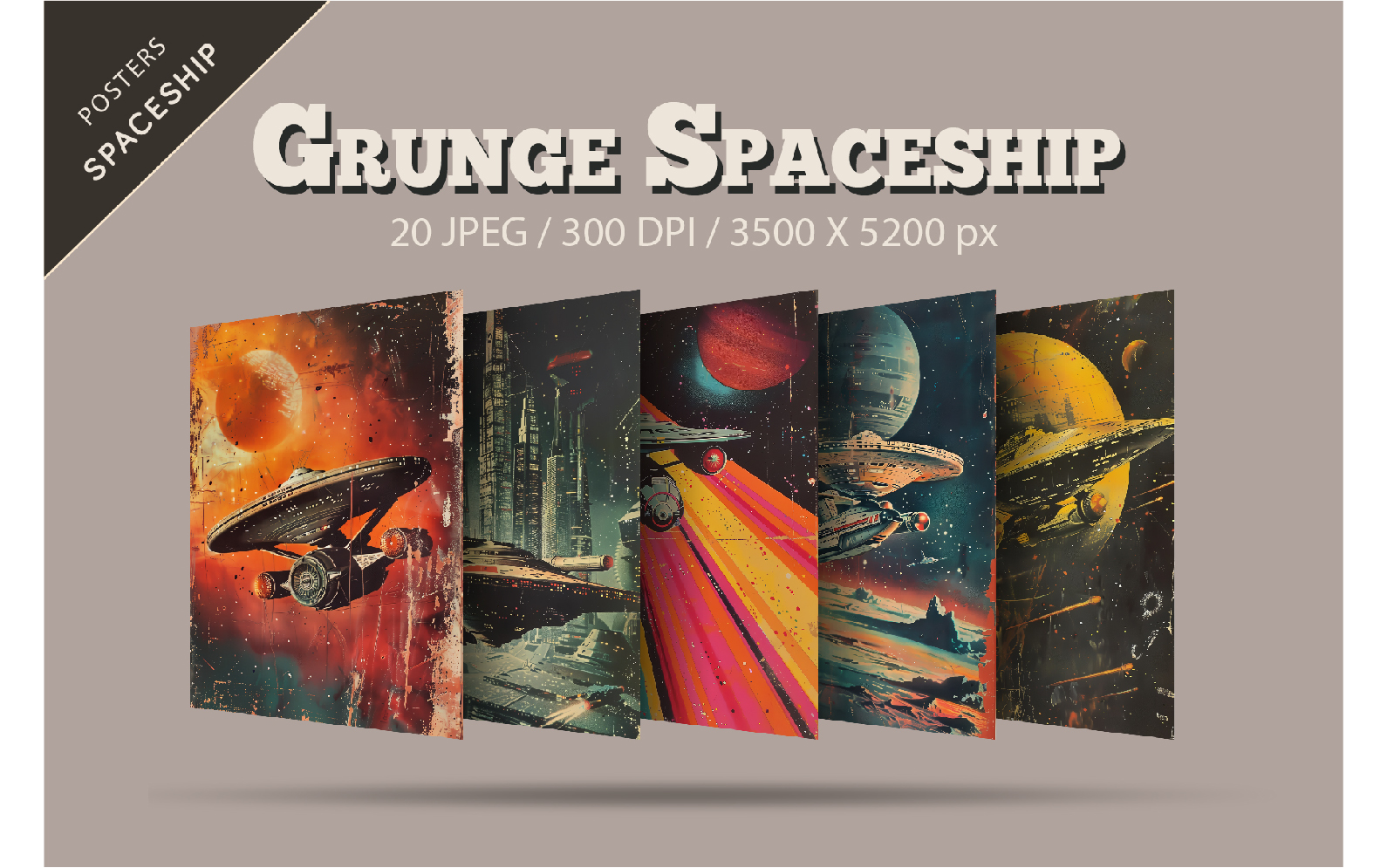 Grunge Spaceship Posters. Retro Art.