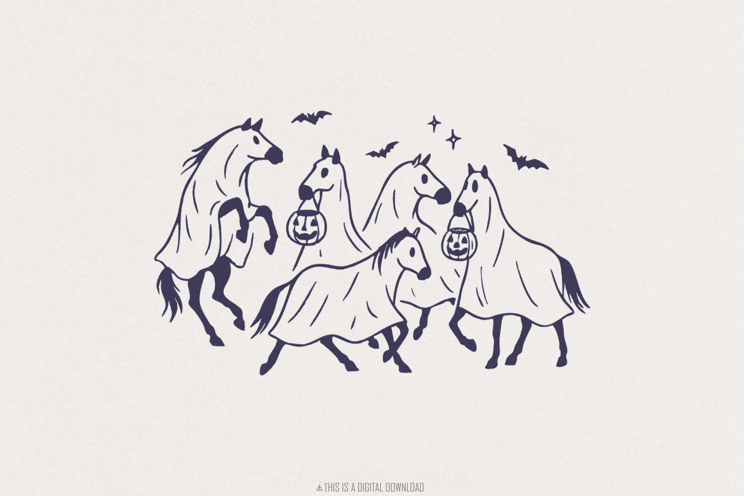 Halloween Horse PNG, Ghost Horses Halloween Art, Spooky Horse PNG, Cute Trick Or Treat Design, Bat Parade, Instant Digital Download PNG