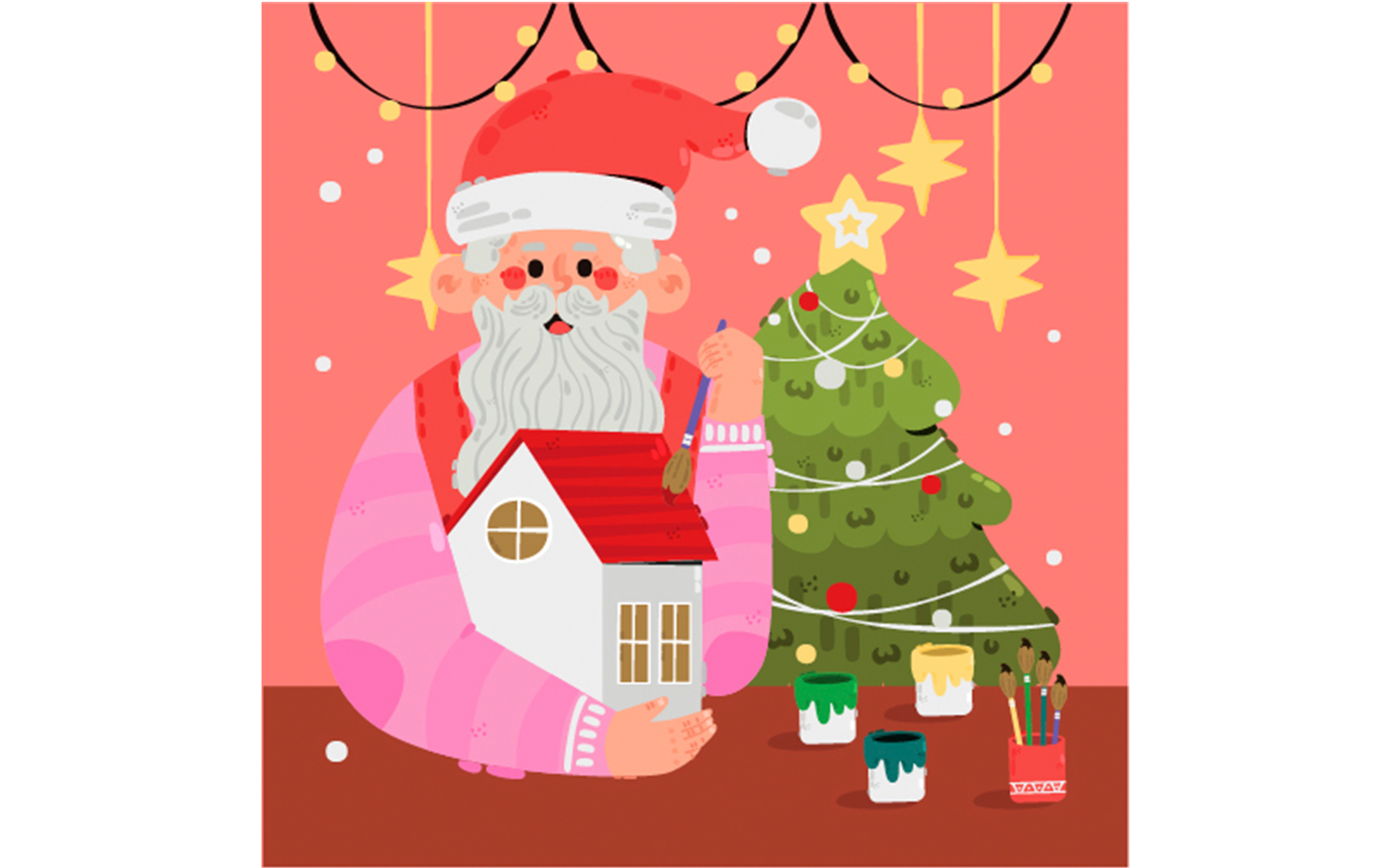 Hand Drawn Christmas Santa Claus Workshop Illustration