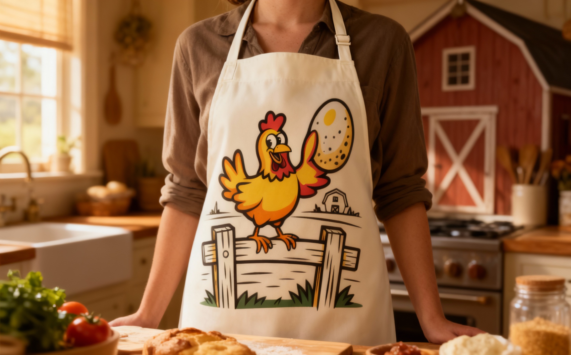 A fun and vibrant cartoon chicken illustration holding an egg while standing on a wooden fence. This cheerful farm-themed vector design is perfect for agricultural branding, organic food packaging, poultry farms, or logo design projects. The clean, colorful lines make it suitable for both print and digital use. Fully editable and scalable in vector format, this design adds a friendly, professional touch to any brand.
