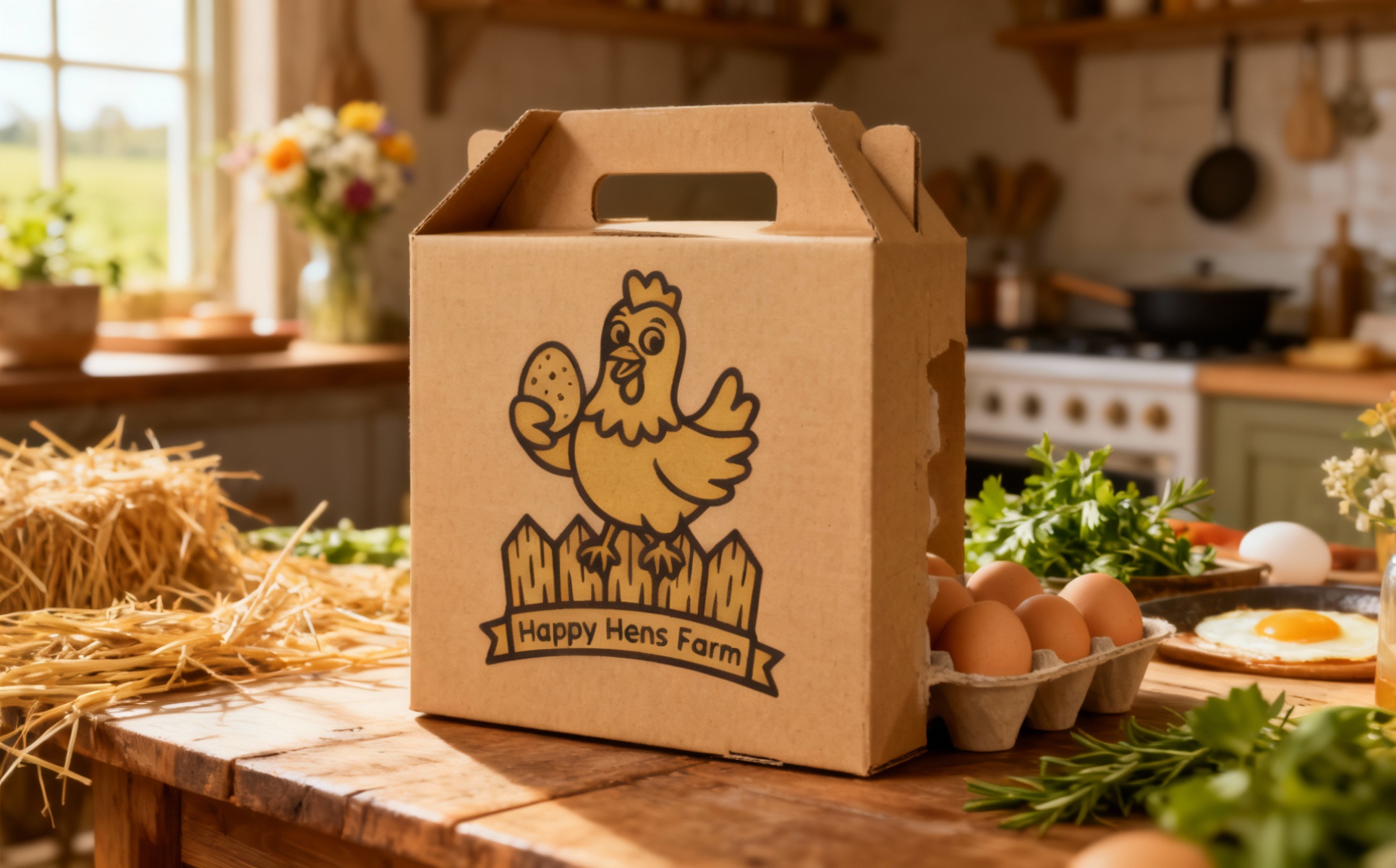 A fun and vibrant cartoon chicken illustration holding an egg while standing on a wooden fence. This cheerful farm-themed vector design is perfect for agricultural branding, organic food packaging, poultry farms, or logo design projects. The clean, colorful lines make it suitable for both print and digital use. Fully editable and scalable in vector format, this design adds a friendly, professional touch to any brand.