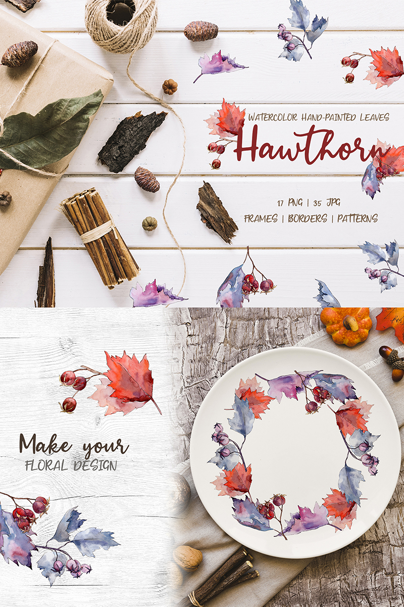 Hawthorn Watercolor png clipart of 52 files. Ideal material for DIY, wedding invitations, greeting cards, quotes, blogs, posters and more.