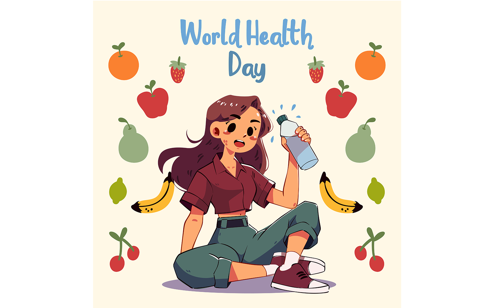**A colorful illustration promoting healthy eating and hydration, ideal for wellness campaigns and nutrition resources**
