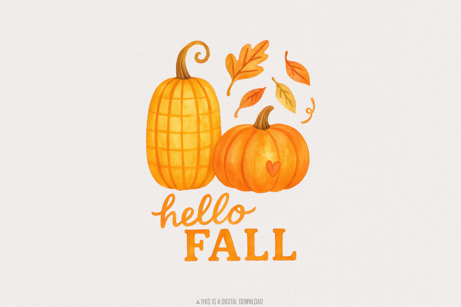 Hello Fall PNG, Autumn Leaves PNG, Cozy Fall Decor, Retro Fall PNG Design for T-Shirts, Fall Illustration