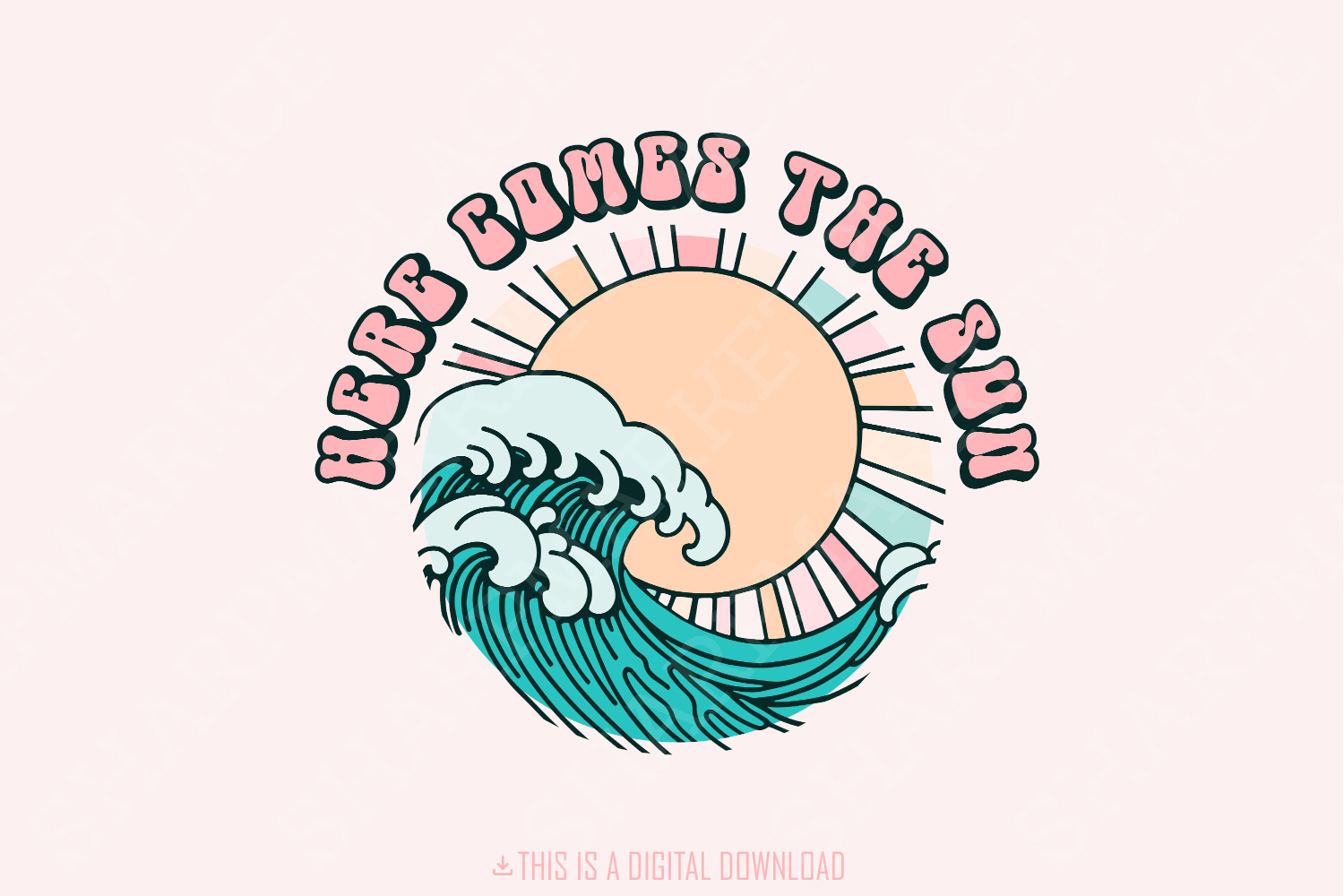 Here Comes the Sun PNG, Retro Beach Waves Summer Design, Vintage Boho Tropical Beach Vibes, Sublimation Printable, Summer Vacation Clipart