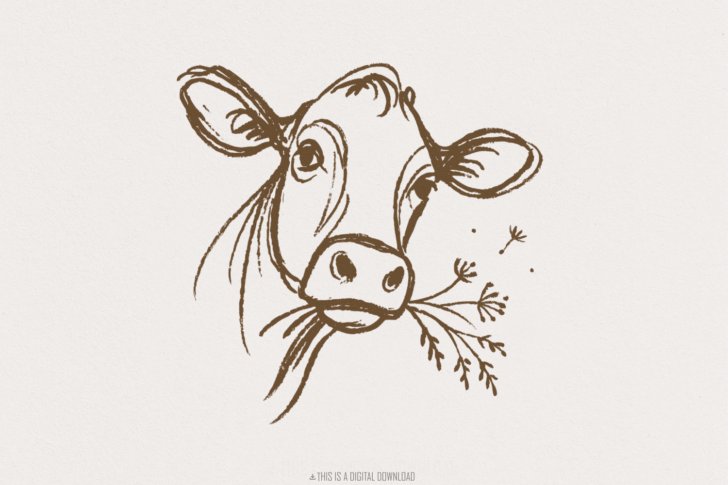 Highland Cow PNG Line Art, Rustic Farm Animal PNG, Vintage Country Cow, Farmhouse Decor Clipart, Wildflower Cow PNG Digital Download Art